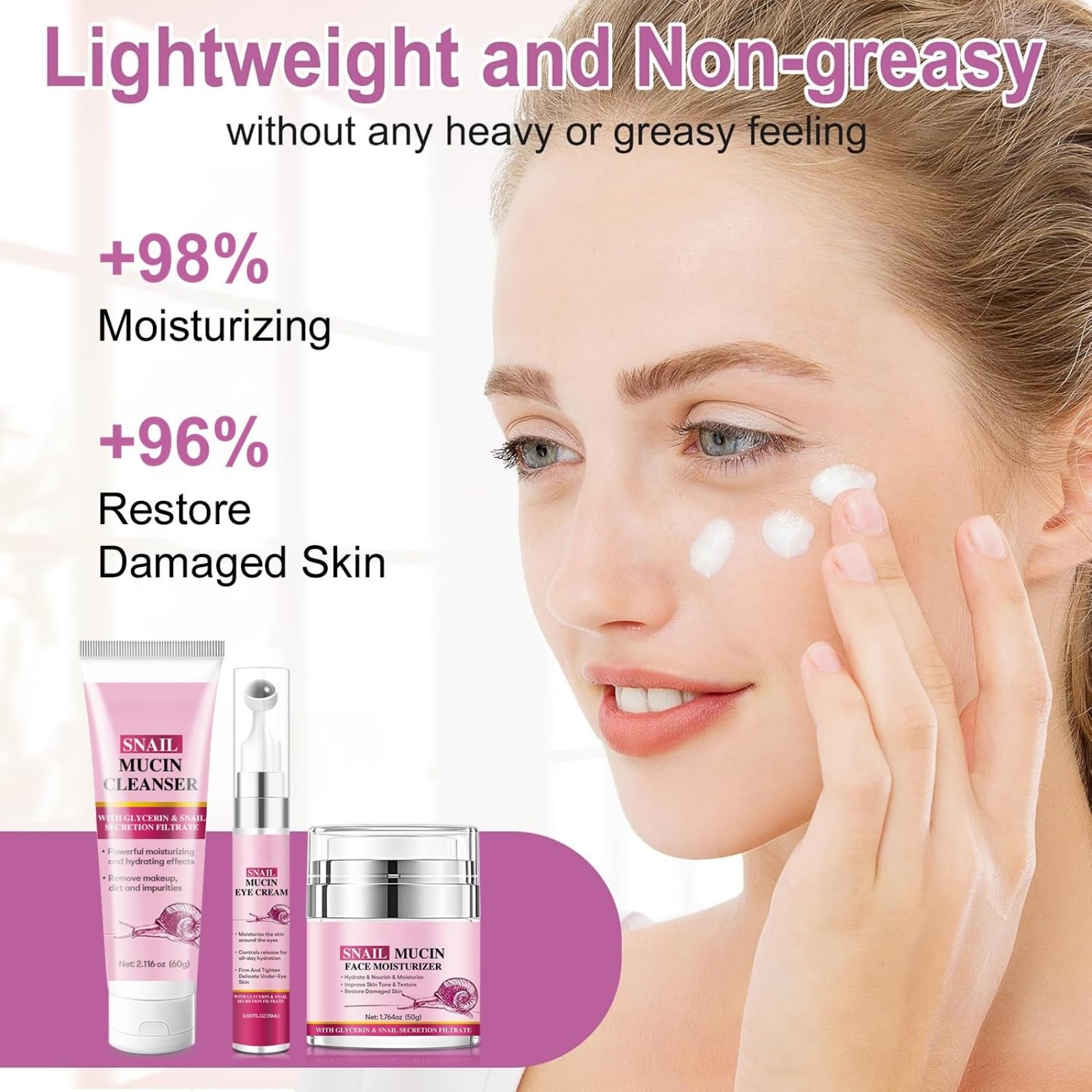 ✔ Deep Hydration & Repair – Infused with snail mucin moisturiser cream, this set locks in moisture for 24-hour softness and helps repair damaged skin.