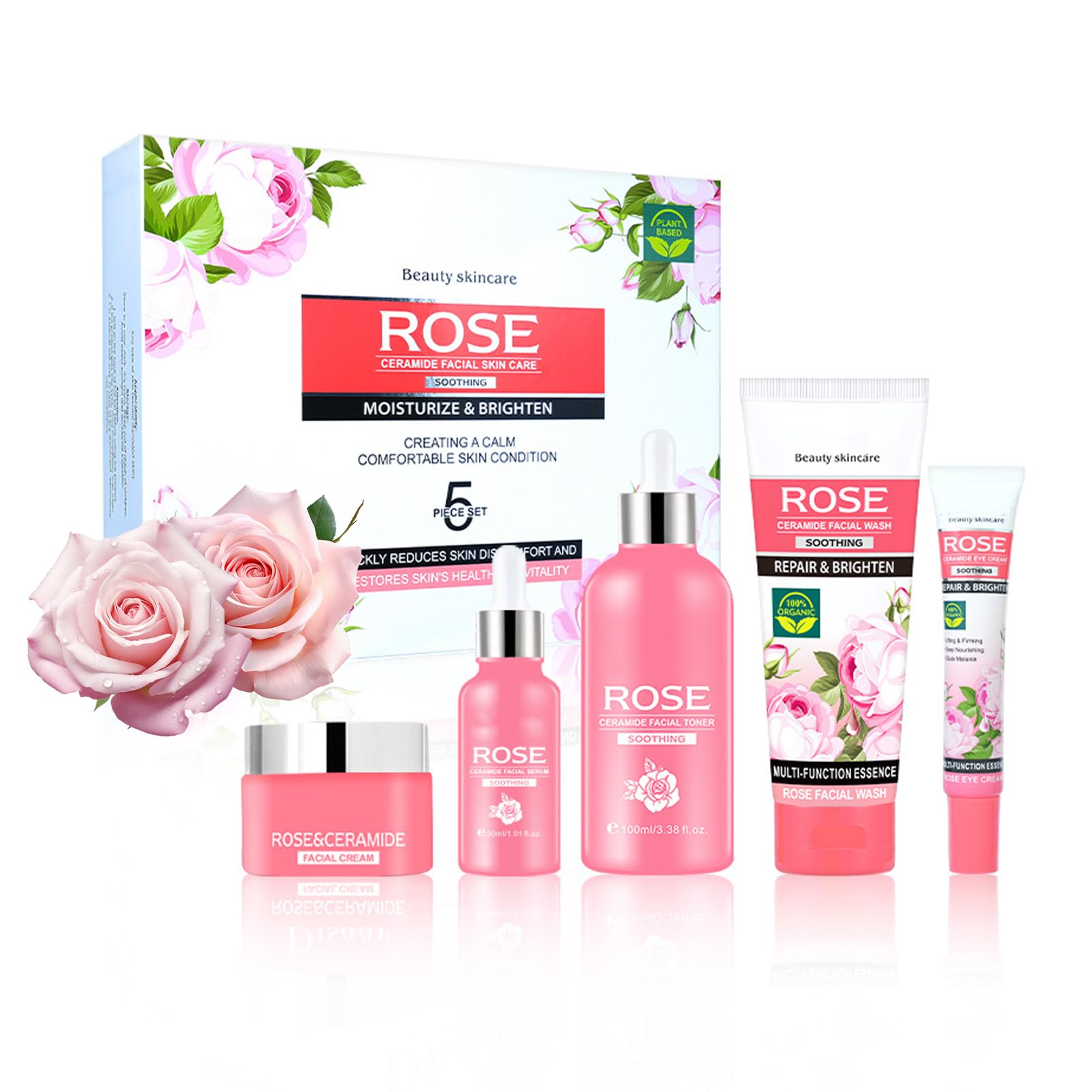 5PCS Rose Skincare Set - Skin Care Sets & Kits - Gift For Women With Cleanser,Eye Cream,Facial Toner,Facial Serum,Face Cream - Gifts For Teenage Girls - Pamper Gifts For Women for Deep Hydration