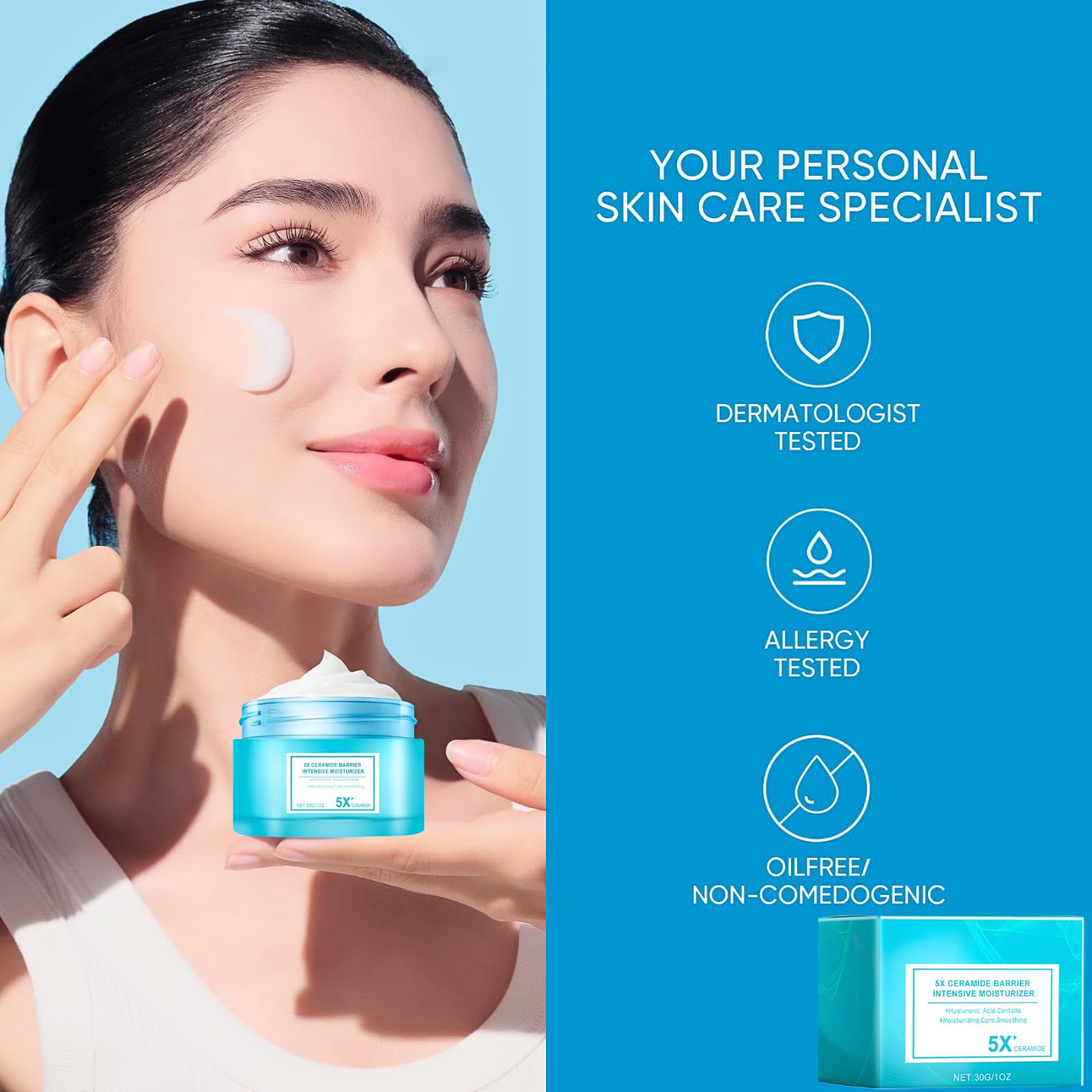 5X Ceramide: The combination of 5 types of Ceramide helps restore and create a protective film on the skin to prevent moisture loss