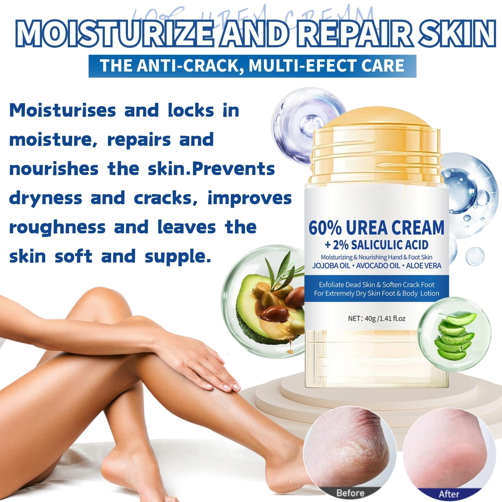 Say goodbye to dry, rough feet with our advanced urea cream 60 percent for feet stick! Specially designed to deeply soften, nourish, and rejuvenate your skin, this powerful urea foot cream 60 percent stick formula delivers targeted care exactly where you need it most. Whether you're dealing with cracked heels, rough elbows, or dry hands, this easy-to-use balm will leave your skin feeling silky-smooth, hydrated, and visibly healthier. π£β¨