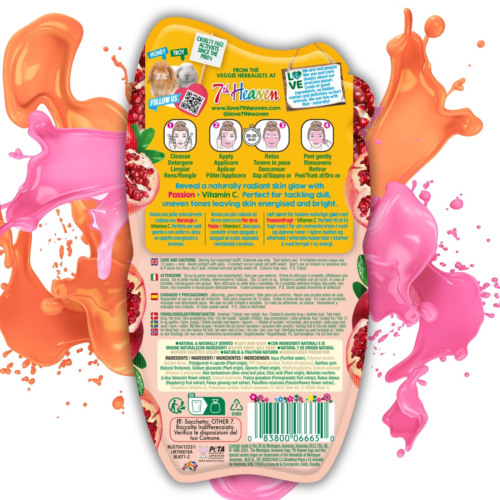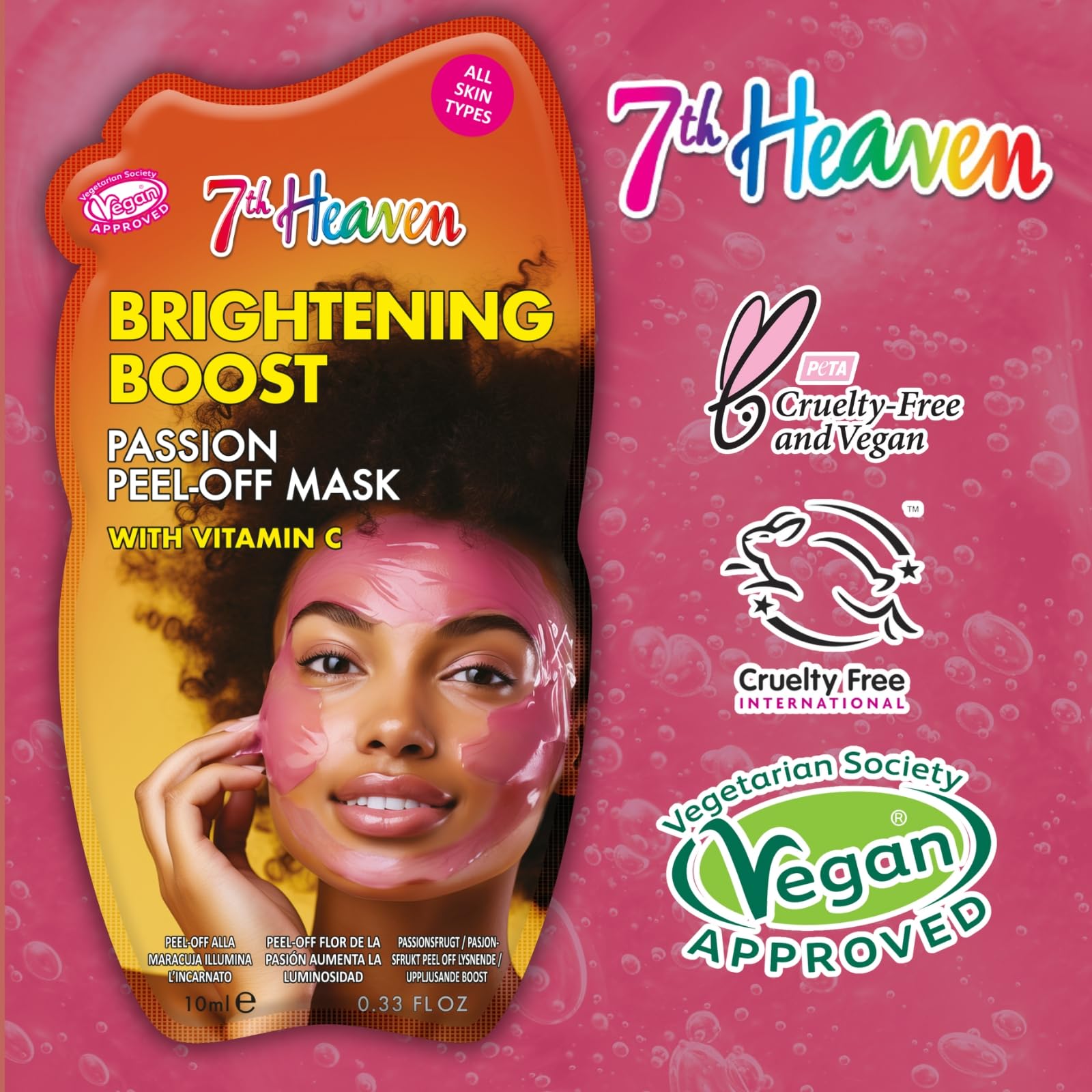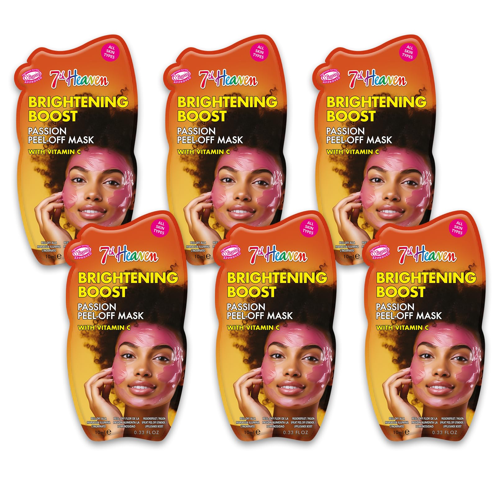7th Heaven Passion Peel Off Face Mask with Vitamin C, Pack of 6 - Brightening Boost - All Skin Types