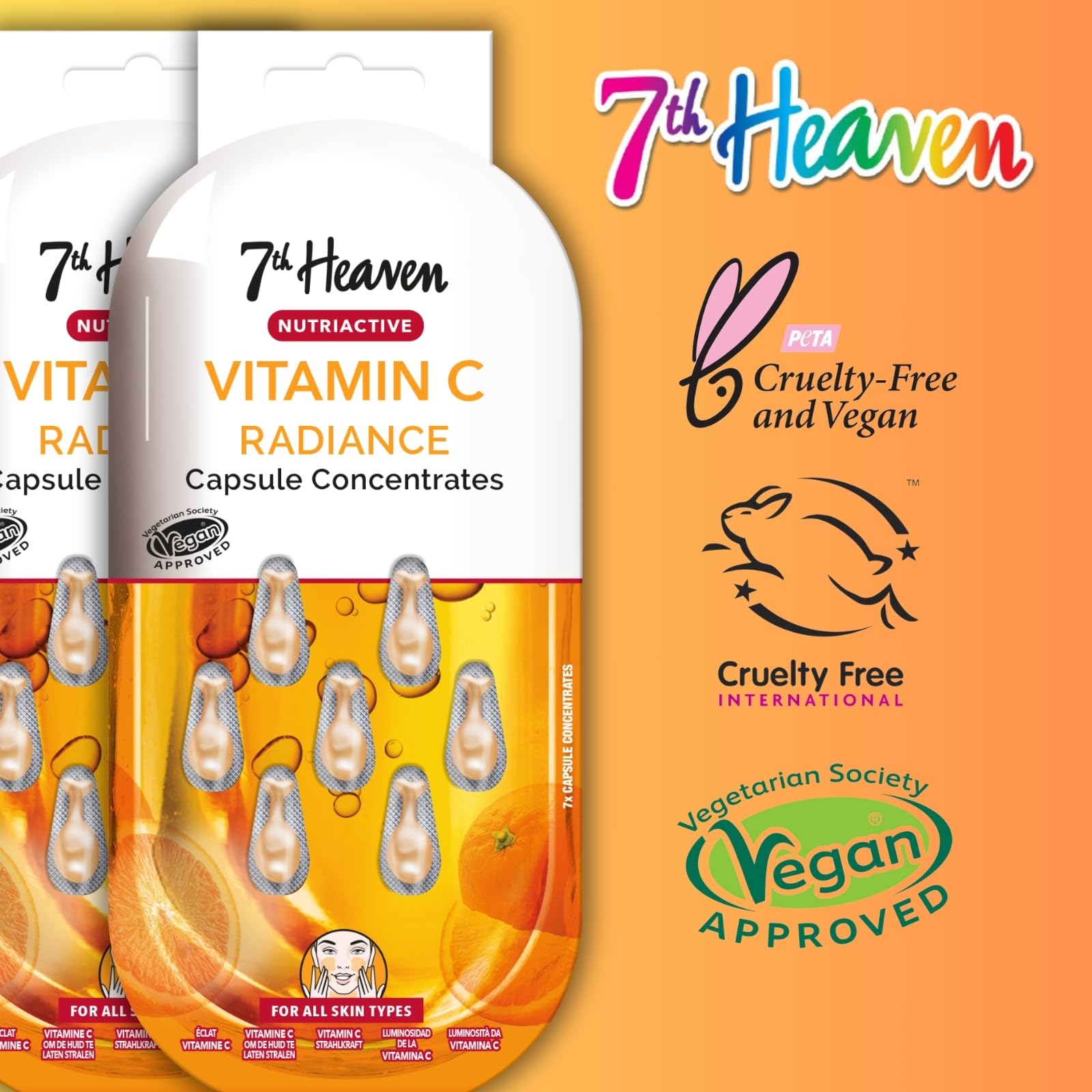 Introducing 7th Heaven Vitamin C Capsule Concentrates, your 7-day solution to radiant and brighter skin! Our Brightening Vitamin C Capsules for Face Care are expertly formulated to reveal a dewy complexion. These vitamin C-enriched capsules are scientifically proven to accelerate cell regeneration, unveiling a brighter skin tone and a vibrant glow. Our capsules are infused with illuminating Vitamin C, a powerhouse ingredient that breathes new life into the skin's surface. With each targeted dose, fine lines are smoothed away, uncovering a renewed and refreshingly smooth skin texture. This concentrated face serum is suitable for both women and men, catering to all skin types and ensuring brighter skin for everyone. At 7th Heaven, we take pride in our commitment to vegan and cruelty-free beauty products, allowing you to pamper yourself guilt-free. Experience the convenience of our 7-day supply – just twist or snip the capsule's neck, massage the hydrating serum into cleansed skin, and let each daily dose work its magic. The result? A luminous, radiant complexion that speaks volumes about your skin's health and vibrancy. This Genuine 7th Heaven Skincare Set is a testament to over 30 years of making the world a happier place for humans and animals alike. Our vegan, cruelty-free skincare serum is inspired by nature's treasures, with no hidden nasties – just pure goodness for your skin. Elevate your daily skincare routine with 7th Heaven Vitamin C Capsule Concentrates and let your skin revel in the transformative power of genuine 7th Heaven skincare. Your journey to a luminous, refreshed complexion starts here!More Info