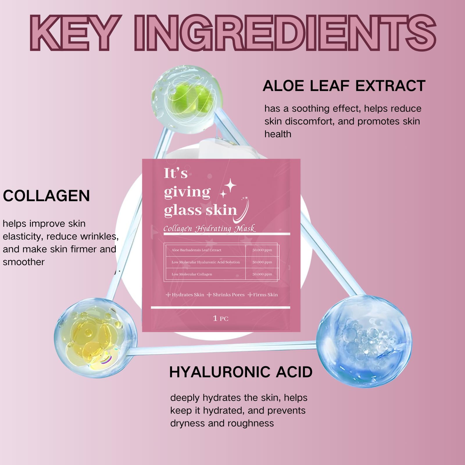 Achieve the coveted "glass skin" glow with this Collagen Hydrating Face Mask, a staple in Korean skincare routines. Formulated with cutting-edge ingredients, this mask delivers unparalleled hydration and firming benefits.Key Benefits: