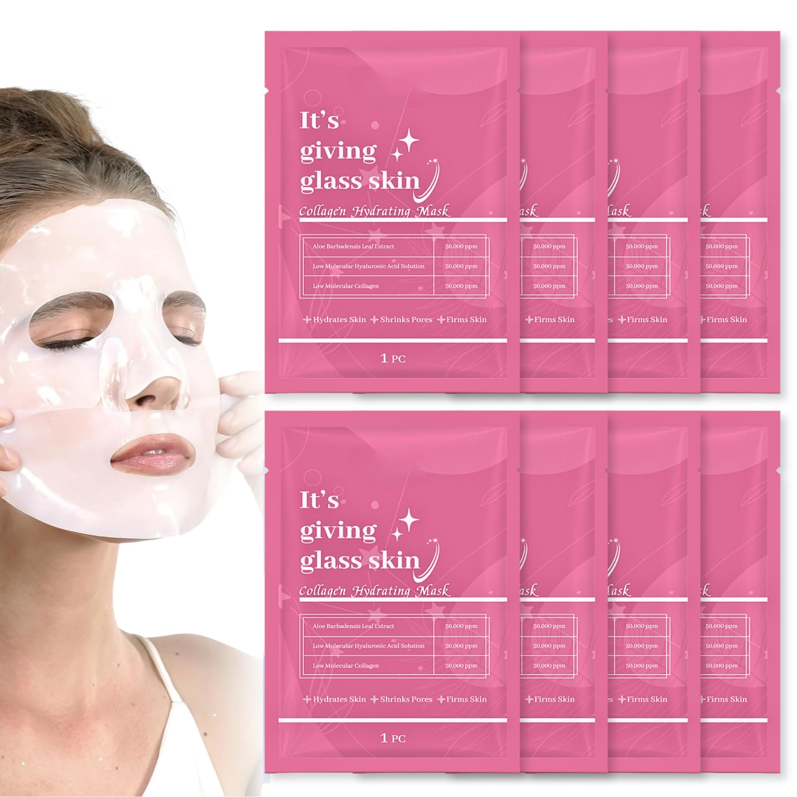 8pcs Glass Skin Mask, Anti Wrinkle Deep Collagen Mask, Skincare, Mothers Day Gifts Idea for mom, Korean Glass Skin Face Mask, Hydrating For Facial Care, Elasticity Improvement, Anti Aging