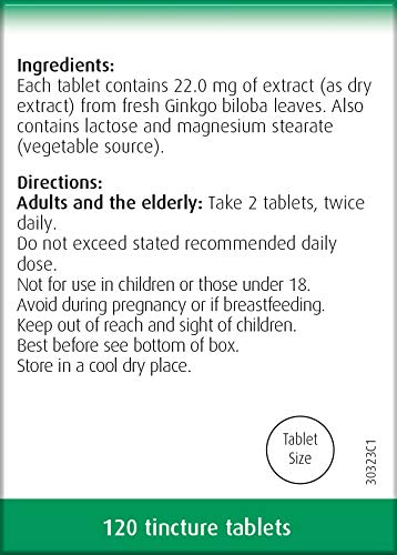 A.Vogel Ginkgo Biloba Tablets | Food Supplement | Extract from Fresh Ginkgo biloba Leaves | Suitable for Vegetarians | 30 Days Supply | 120 Tablets