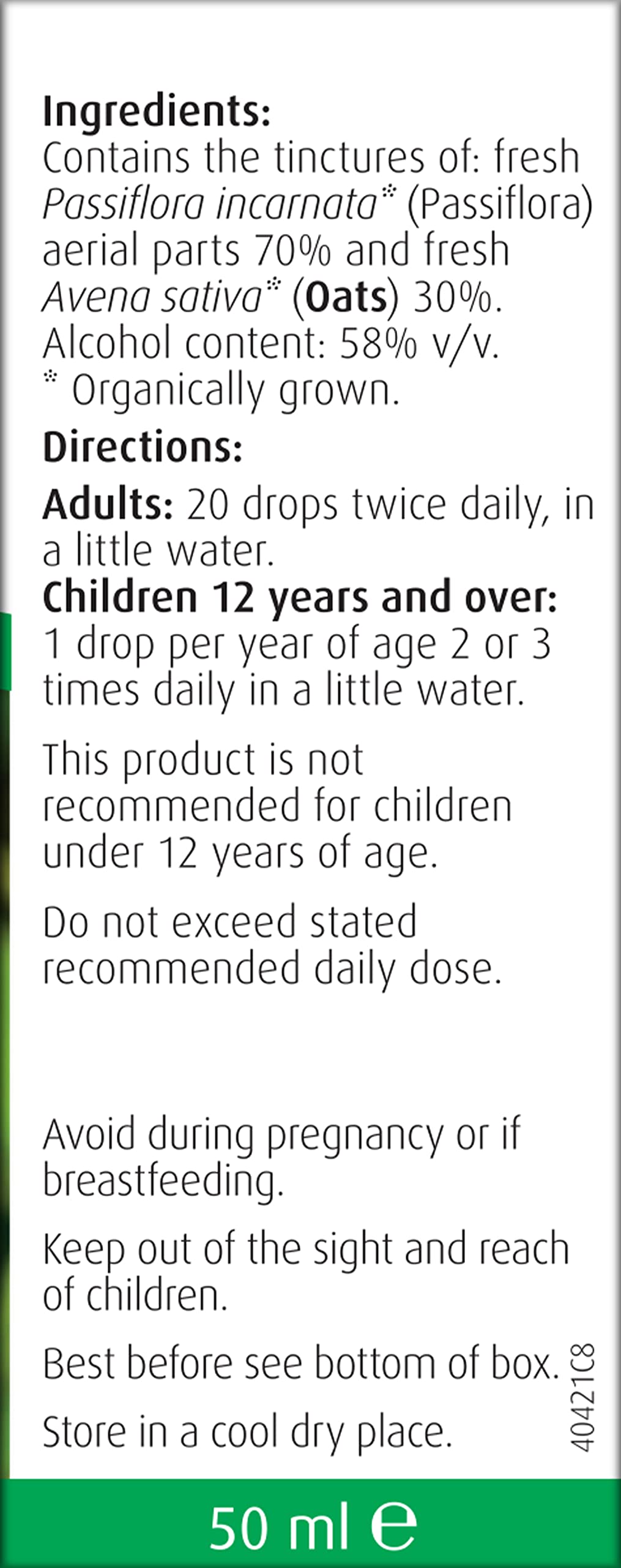 - Combination of fresh herb tinctures of passiflora and oat herb