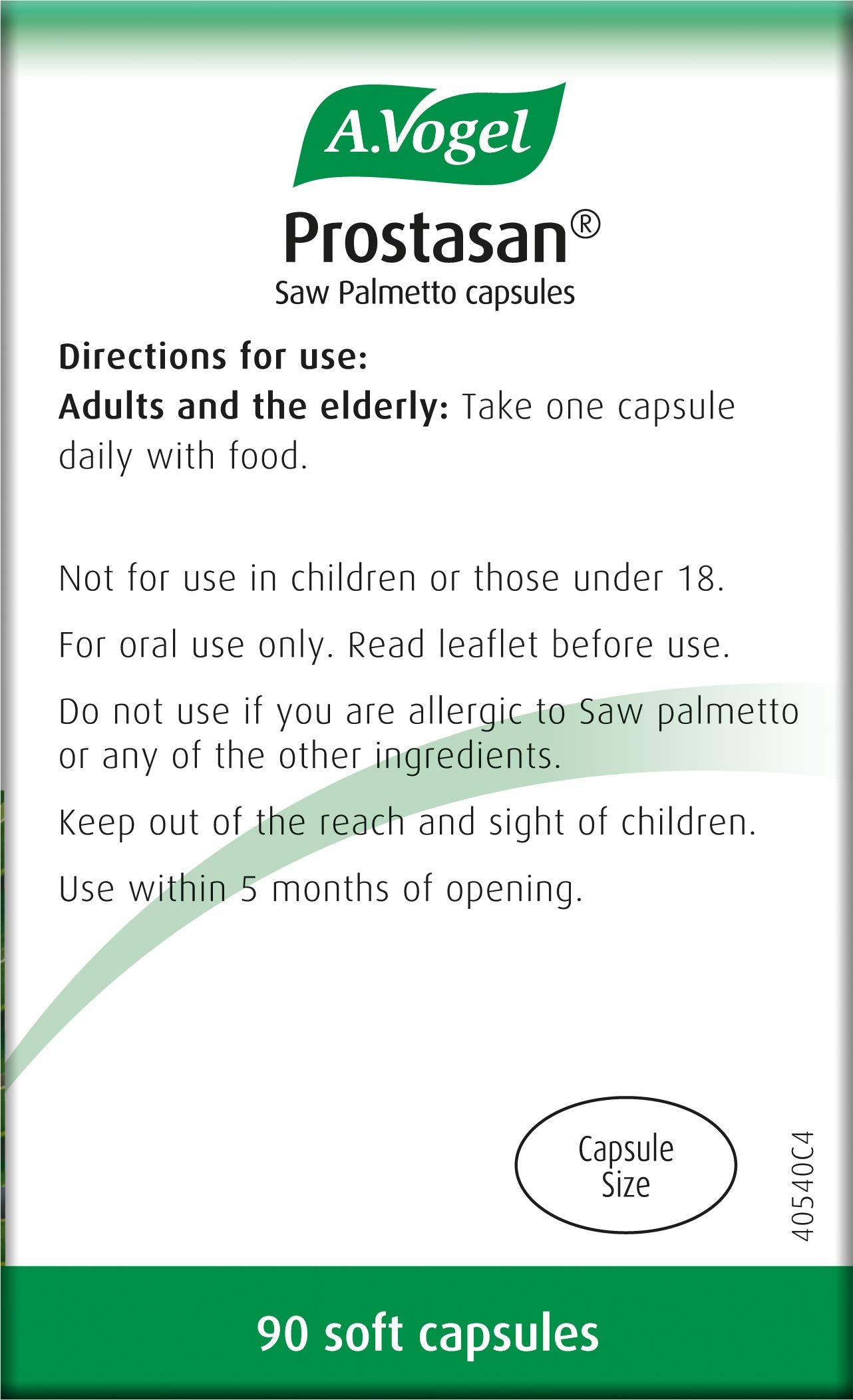 - HOW TO TAKE: Adults and the elderly to take one capsule daily with food. You can take A.Vogel Prostasan Saw Palmetto capsules for as long as is necessary. Always read the leaflet.