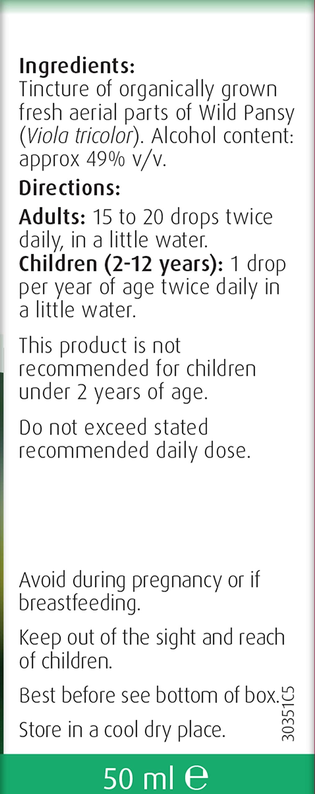 A.Vogel Viola Tricolor Wild Pansy is a herbal food supplement with extract of organically grown and freshly harvested Viola Tricolor, suitable for Vegans, 50mlMore Info