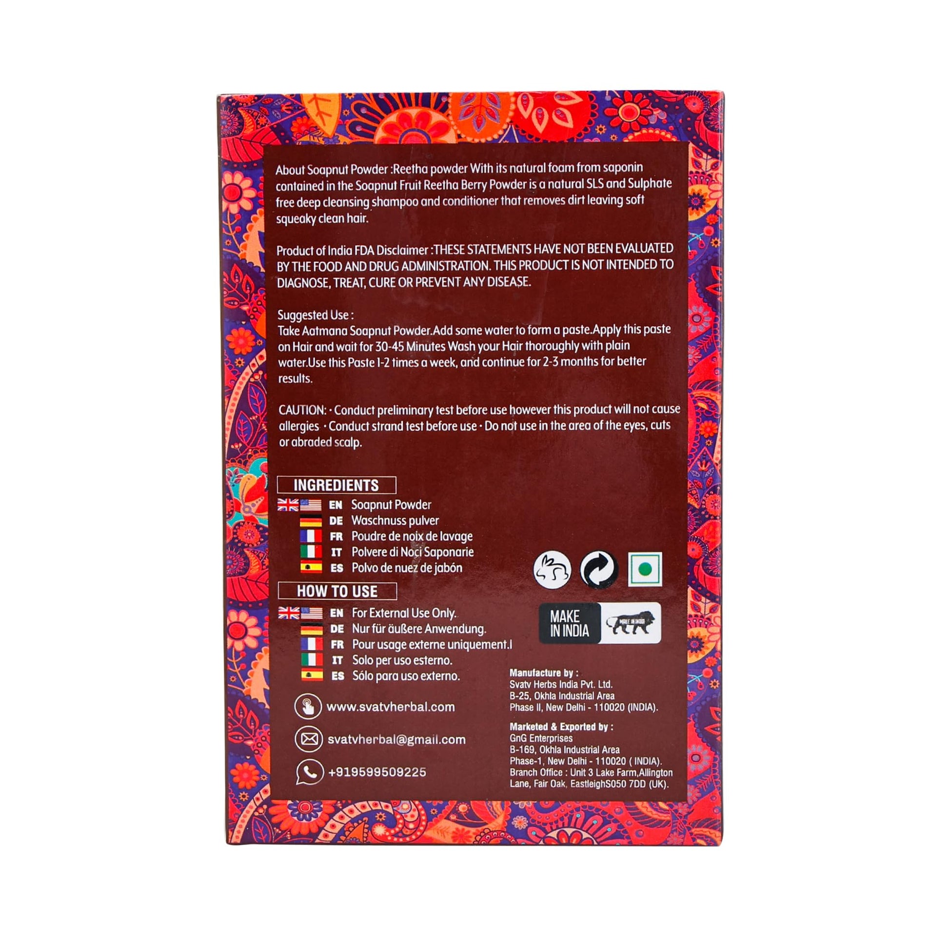 - Manufacture: SVATV HERBS INDIA PVT LTD