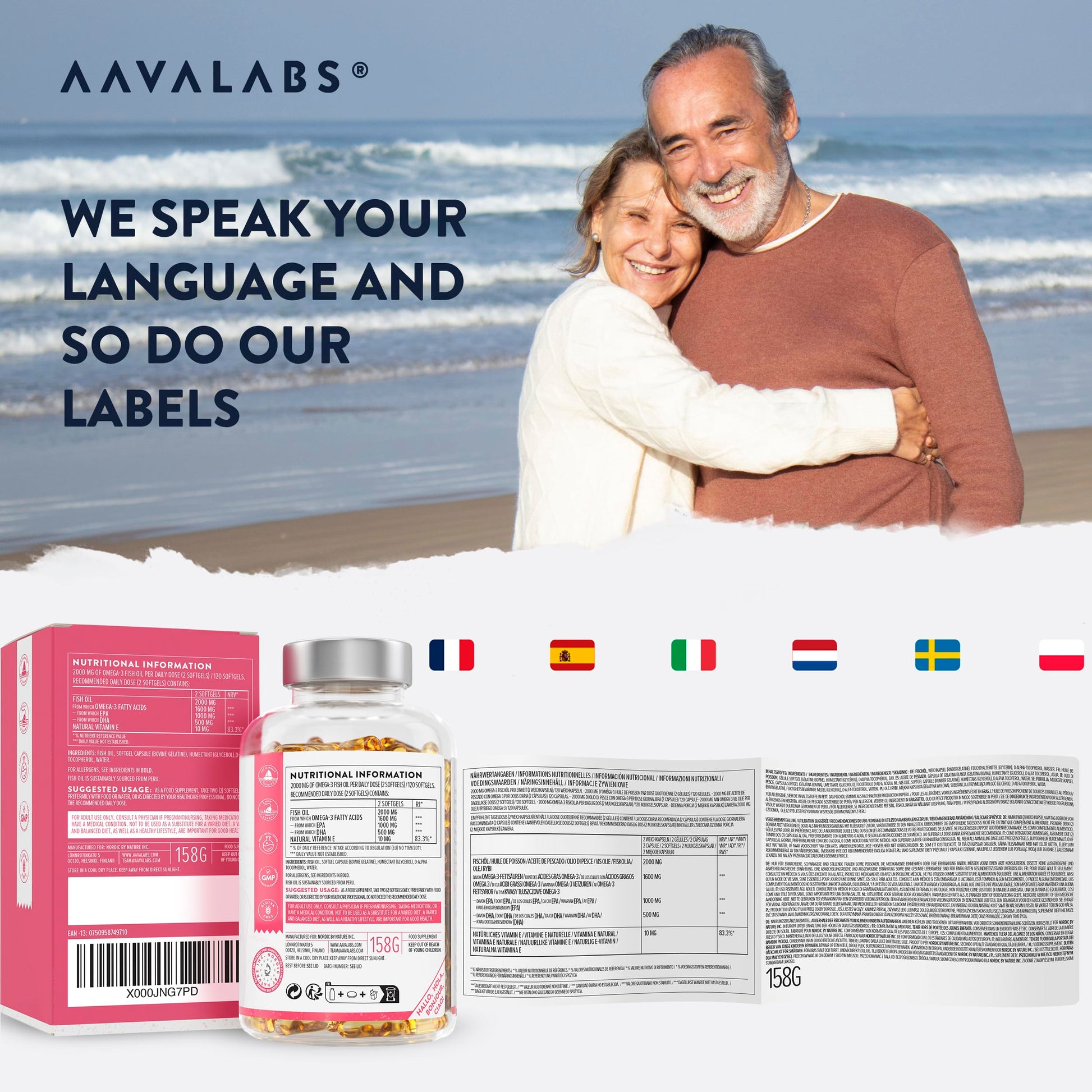 AAVALABS Omega 3 Fish Oil 2000mg per Daily dose (2 softgels) - 1000mg EPA + 500 mg DHA per dose - High Strength Omega 3 Fatty Acids Supplements - Molecularly Distilled - 120 Capsules - 60 Days Supply