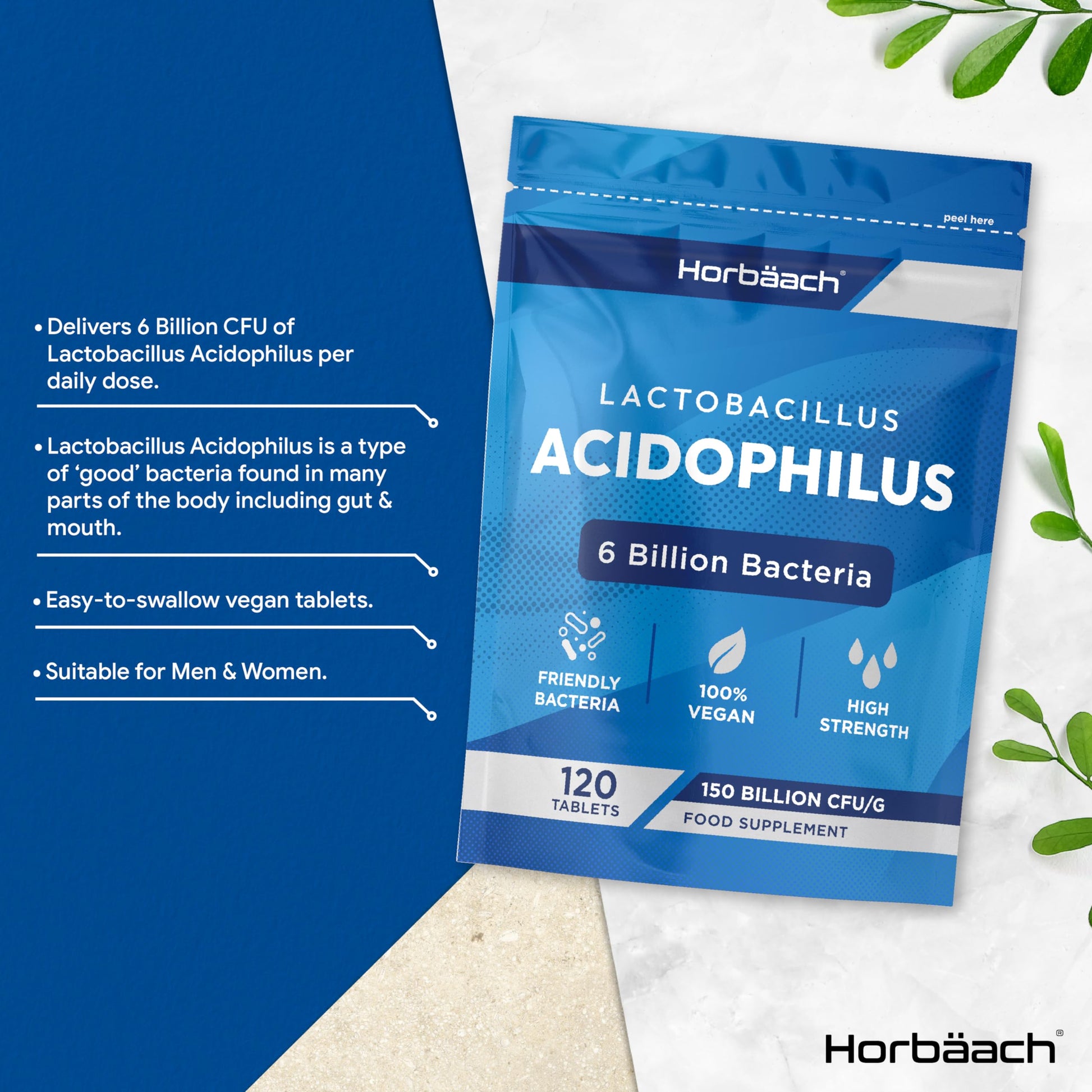 Acidophilus Probiotic Tablets | 6 Billion CFU | Probiotic Supplement for Women & Men | 120 Vegan Tablets | by Horbaach