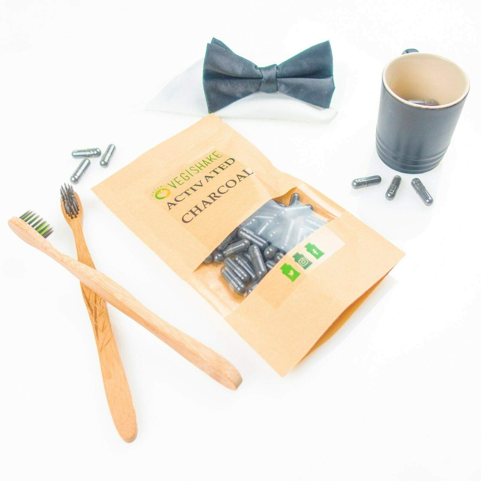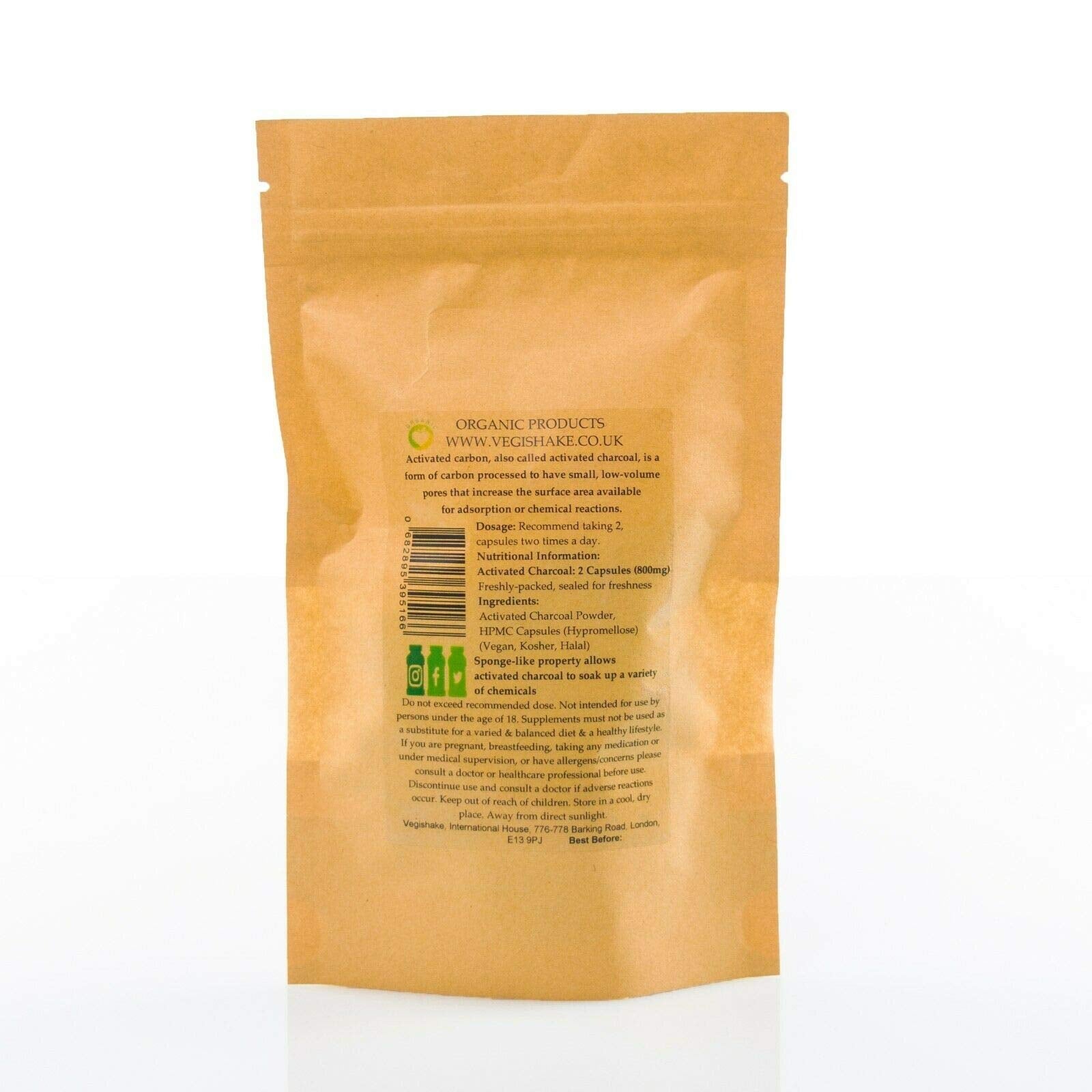 Activated Charcoal powder, HPMC Capsule (Vegan Halal Kosher) Freshly Hand-Packed To Order Each bag is hand-packed, hand-sealed and hand-stamped for maximum freshness.