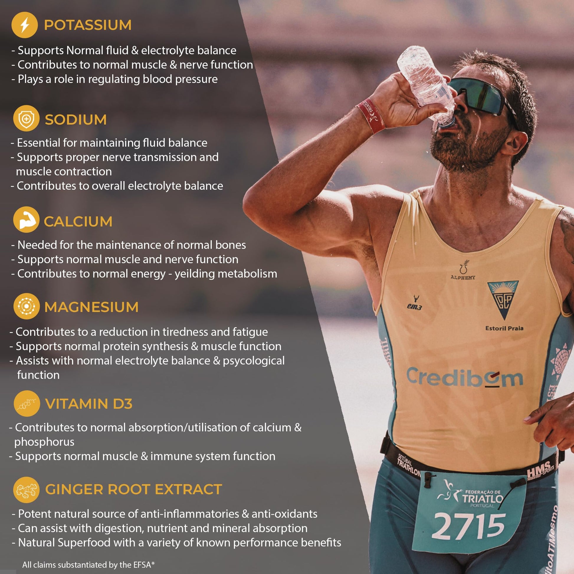 Our flagship Advanced Electrolyte Complex performance salts Tablets for Men and Women features the 5 Key Electrolyte's in the optimal ratios for fast, effective hydration and prolonged performance. Better yet, to improve effectiveness and performance even further, the Alphemy team has developed the first electrolyte supplement on the market to include Vitamin D3 and Ginger Root extract. Containing 120 tablets (with a 1-2 tablet per day dosage), just one pot provides you with up to 4 months’ worth of advanced Electrolyte tablets to support your daily activities, training as well as health, business, career, and fitness goals! Advanced Nutrition Backed Formulas UK Manufactured to GMP Standards Ethically Sourced Premium Ingredients Vegan, Vegetarian and Keto friendly Added Magnesium, Vitamin D3 and 20:1 Ginger Root Extract for unrivalled performance 1-2 tablets per day (up to 4 month supply)More Info