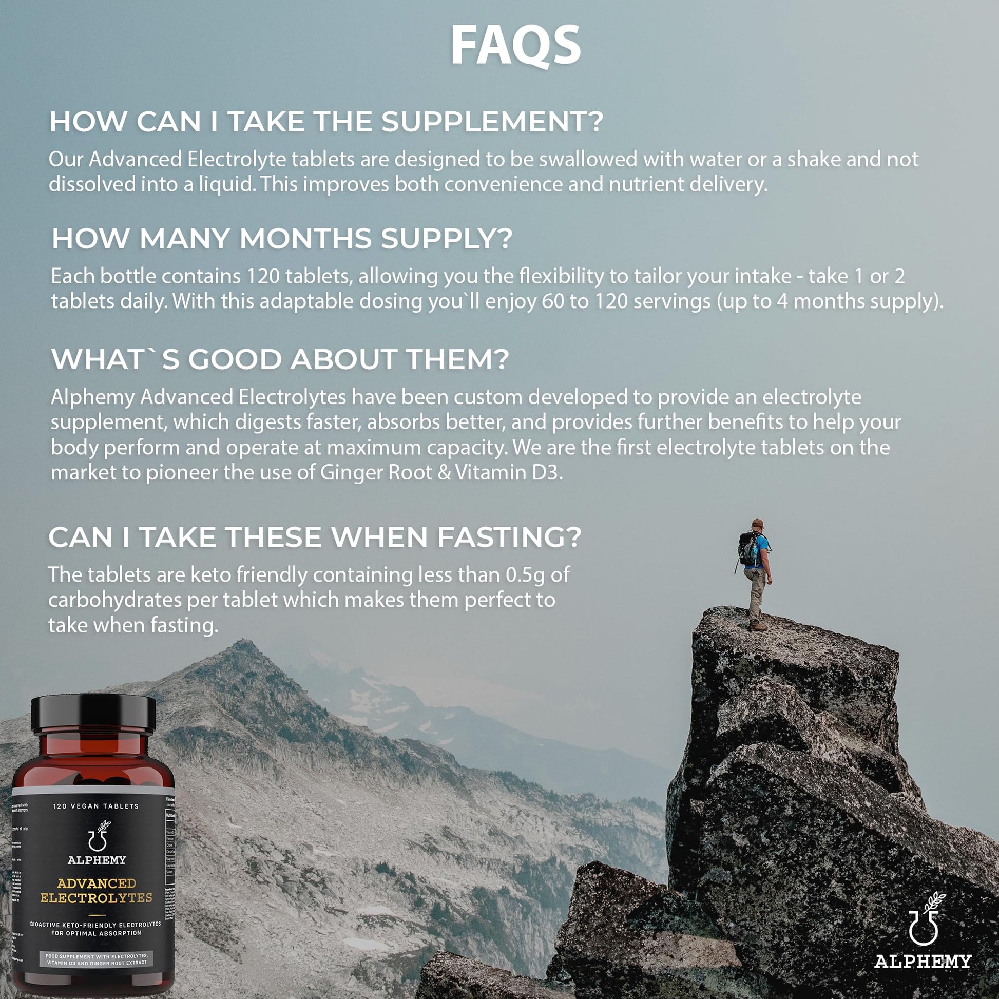 Advanced Electrolyte Complex, x120 Tablets Enhanced with Ginger Root Extract, Vitamin D3 & Magnesium. High Performance Salts for Fasting, Keto & Vegan Friendly, UK Made Alphemy