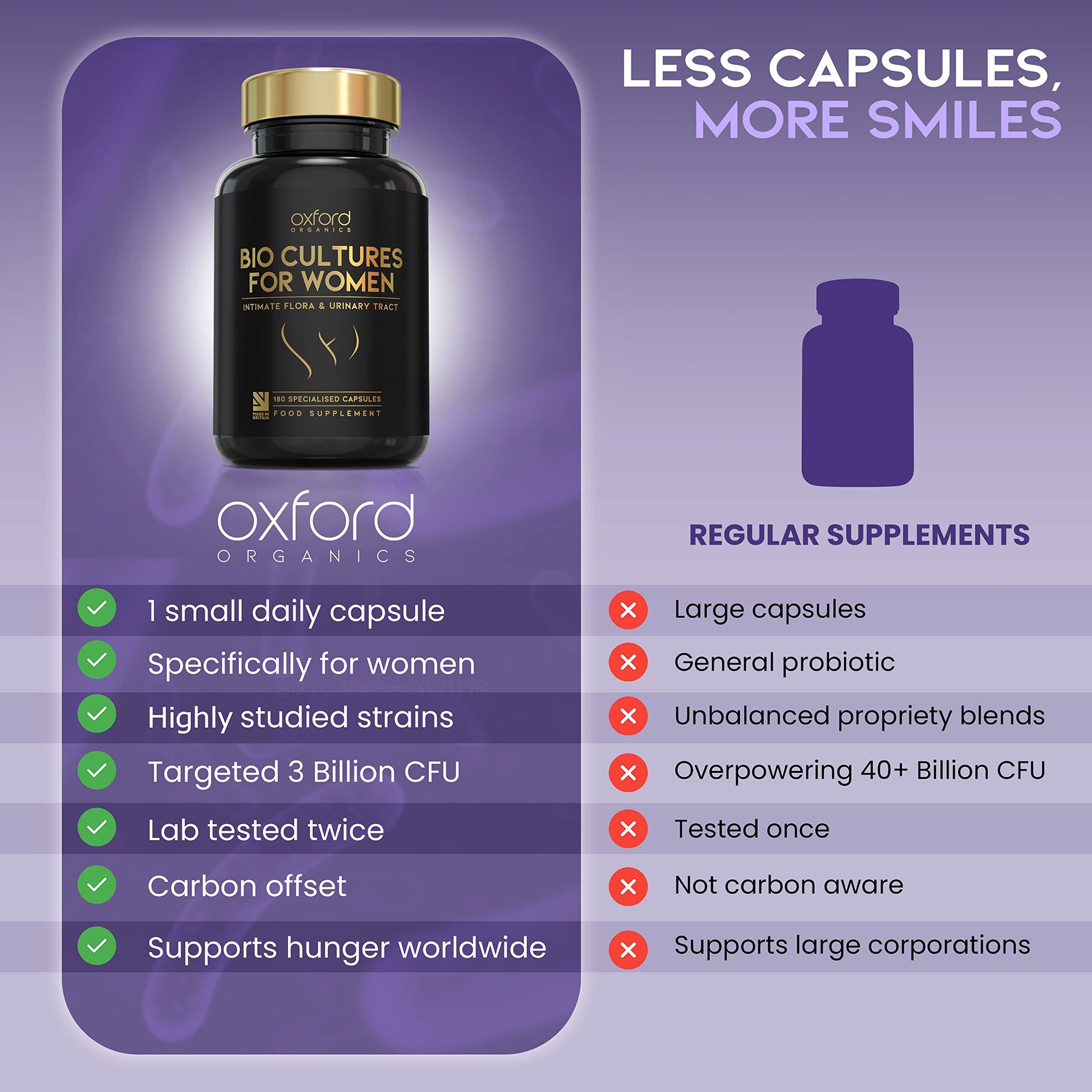 - ✔️ SPECIALISED FORMULATION FOR FEMALES ONLY - Oxford Organics Probiotics for women are scientifically formulated for the vaginal microbiome and may help to support natural pH levels in the vagina. This bio cultures complex can also be taken alongside UTI, Bacterial Vaginosis and thrush treatment.