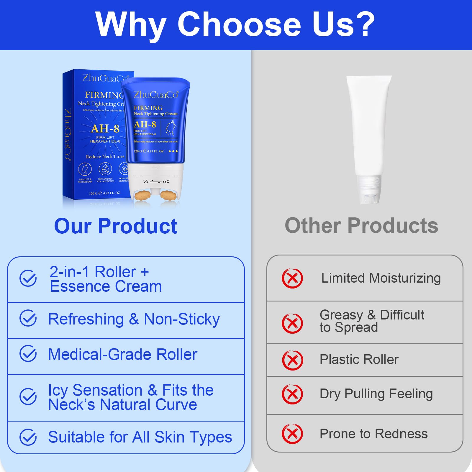 Ah8 Neck Firming Cream, Neck Firming Creams Contain Hexapeptide,With Double Roller Massage,Reduce Wrinkles Fine Lines And Double Chin,Firm And Lift Sagging Skin