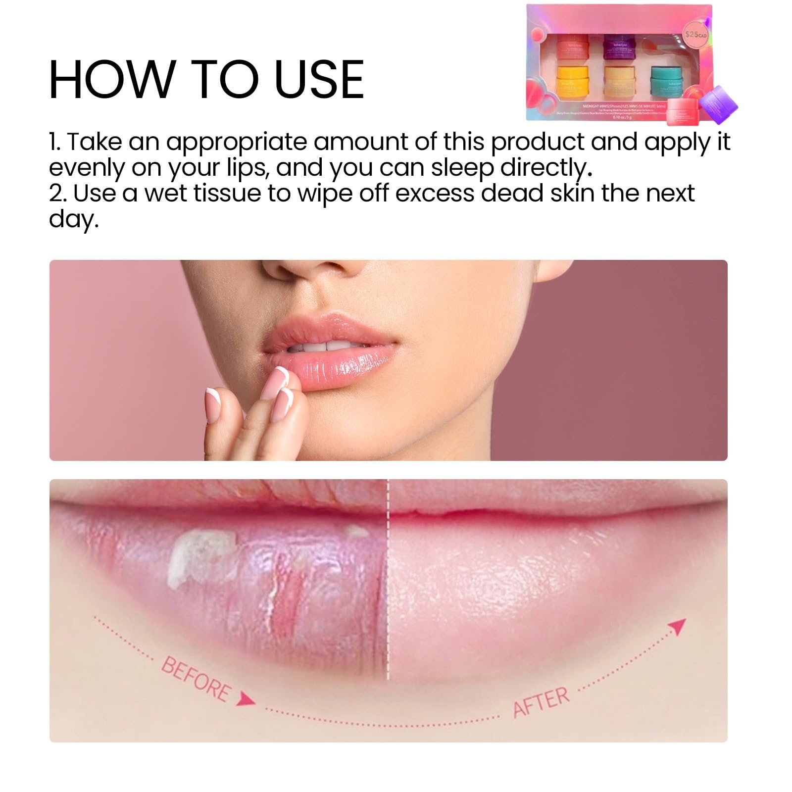 AINxtolm 5pcs Lip Sleeping Mask,Day And Night Repair Lip Balm,Lip Balm Set,Lip Masks for Dry Lips,Lip Mask Overnight,Lip Balms for Chapped Cracked Dry Lips,Lip Lightening for Dark Lips,Chapped Lips Treatment