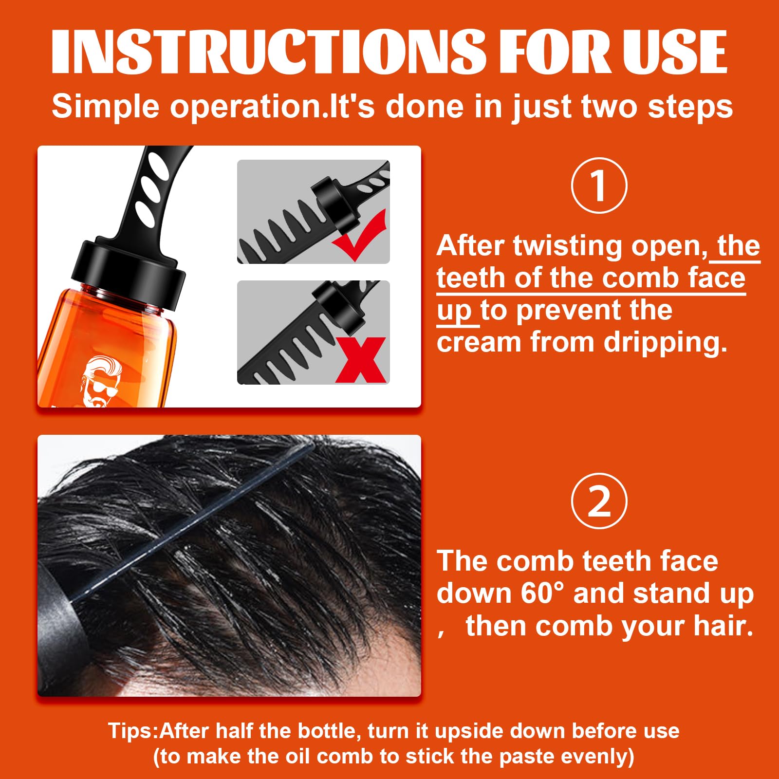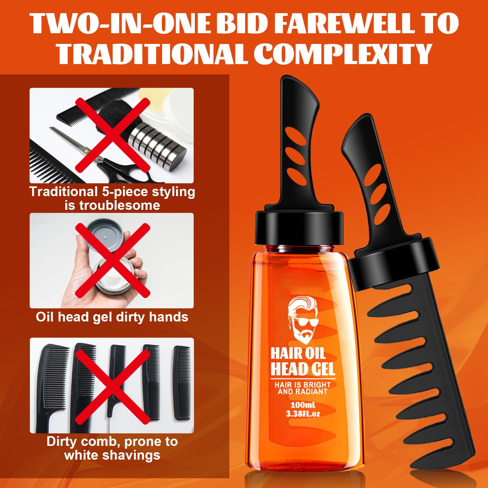 Alelyer Hair Styling Gel for Men, 2-in-1 Hair Wax Gel with Comb, Hair Styling Gel for Men, Hair Gel with Comb, Hair Oil Head Gel, Hair Styling Gel with Comb for Men, Long-Lasting, Quick Building, 100 ml