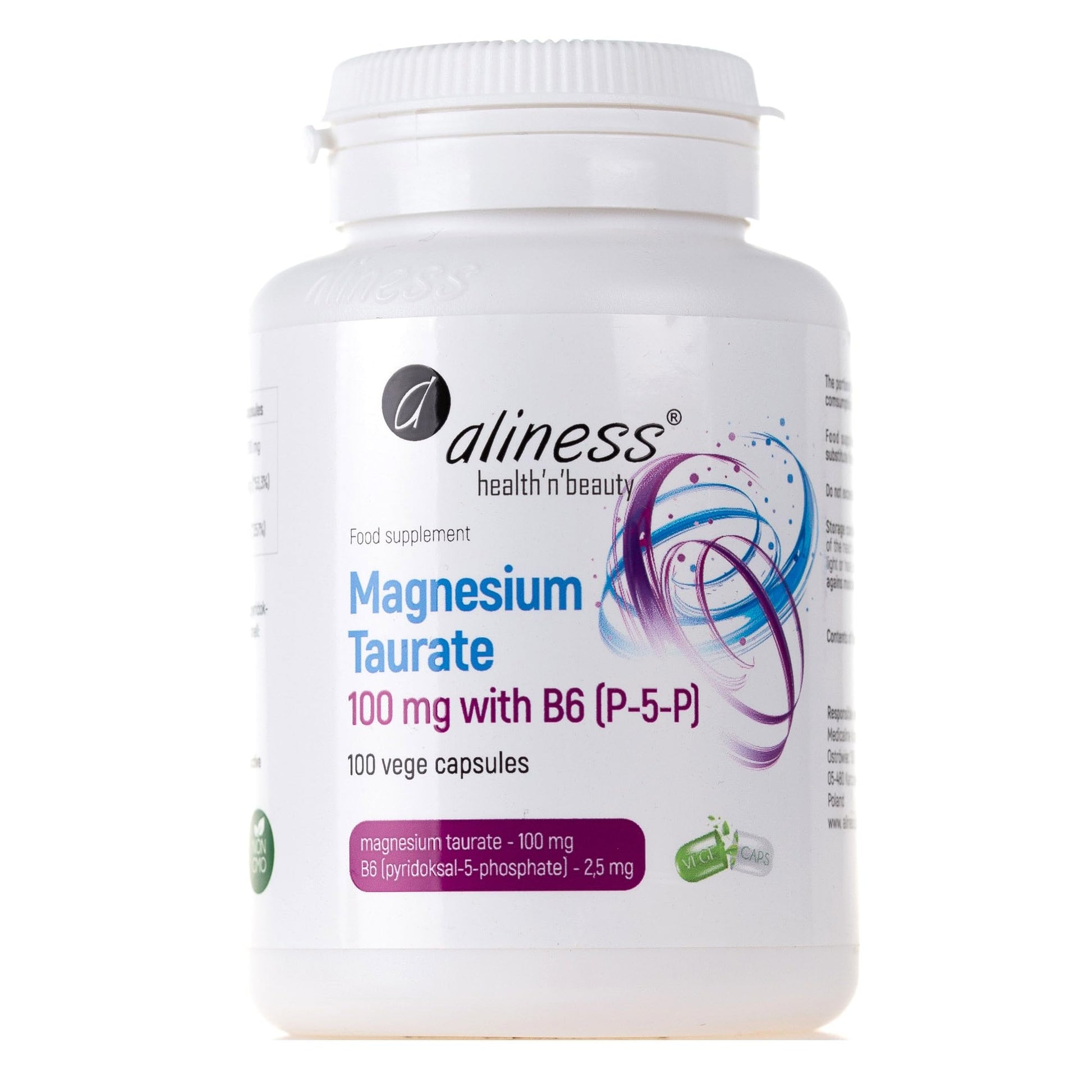 Aliness Magnesium Taurate with Vitamin B6, 100 Vegan Capsules