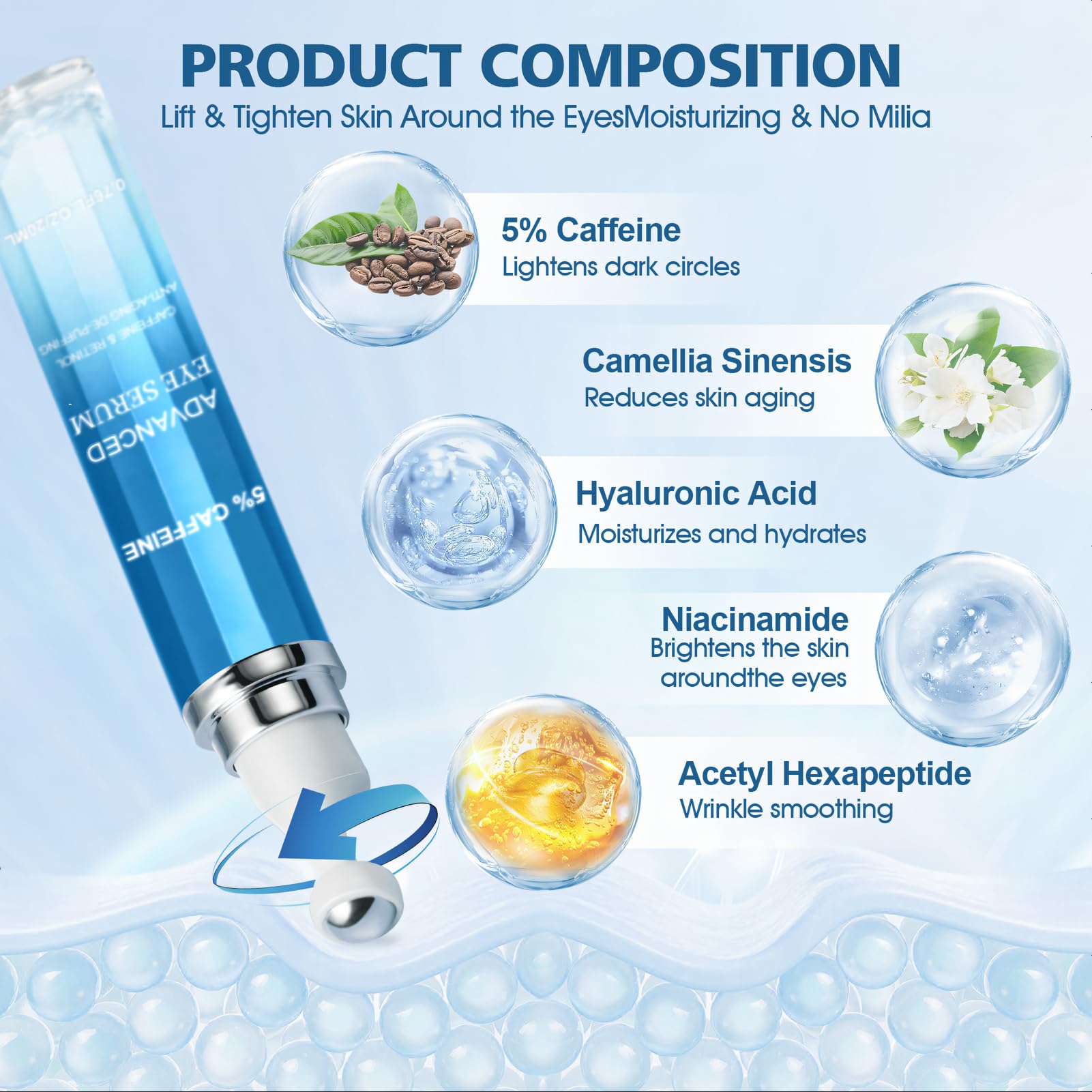 Allony Caffeine Eye Cream, Eye Cream for Dark Circles and Puffy Eyes, Eye Cream Anti Aging, Eye Bags Remover, Moisturizing, Firming and Anti-wrinkle(20ml)