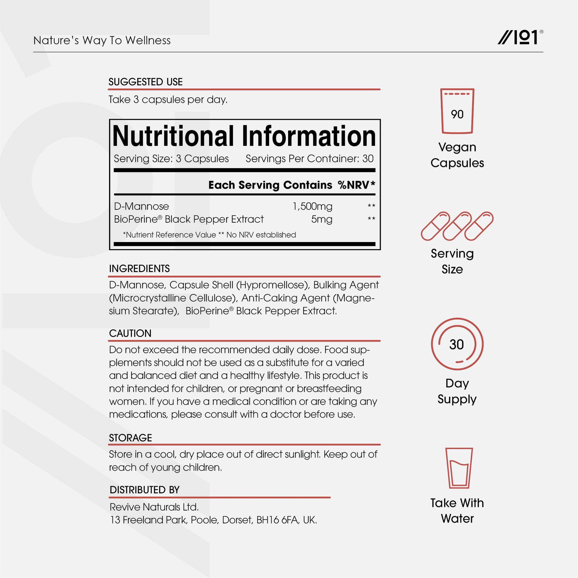 ALPHA01 D-Mannose 1500mg with BioPerine® – 90 Vegan Capsules – Made with BioPerine® Black Pepper for Higher Bioavailability – Resealable and Recyclable Pouch – by Alpha01®
