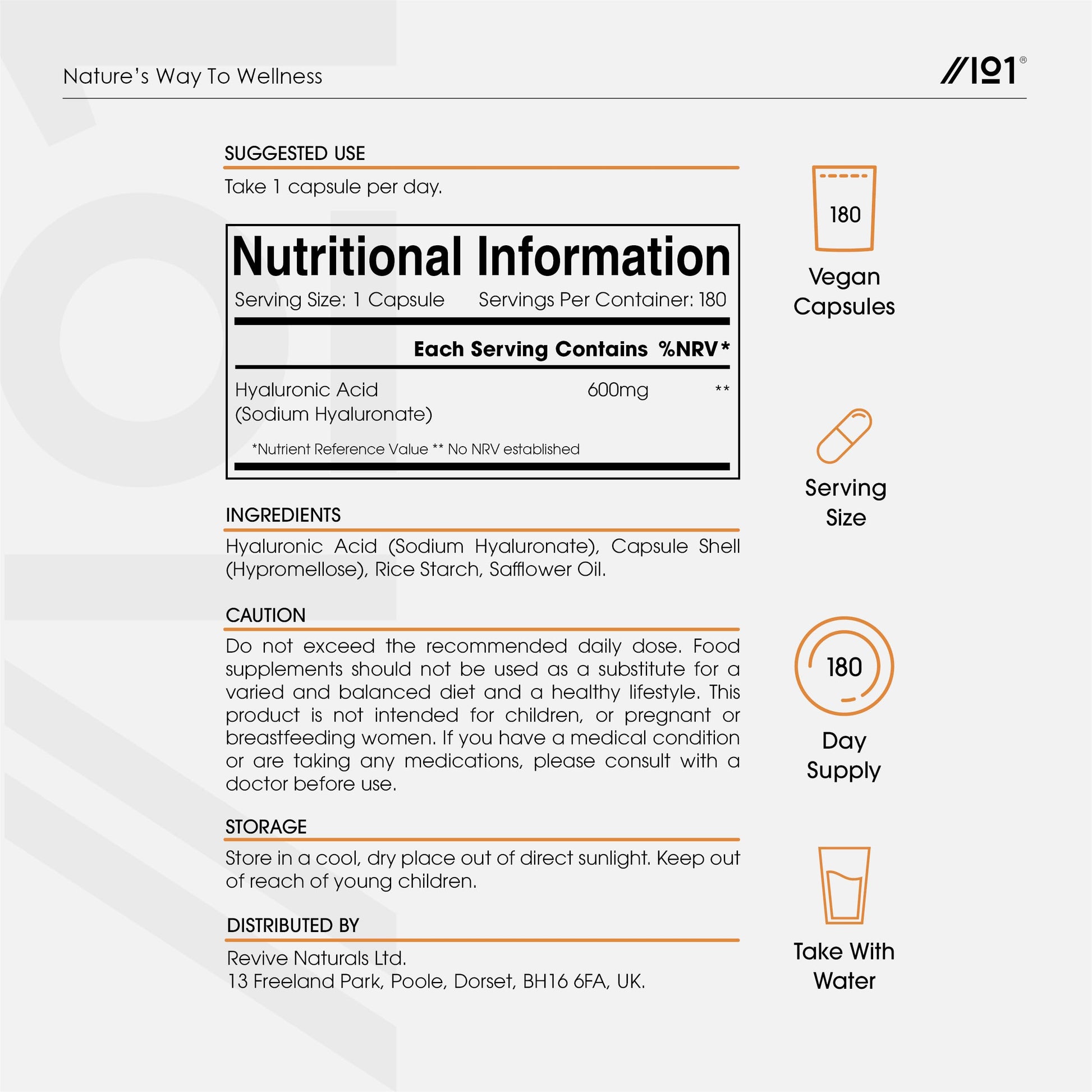 ALPHA01 Hyaluronic Acid Supplement 600mg (800-1500 KDA) - 180 Vegan Triple Strength Hyaluronic Acid Capsules - 6 Month Supply - Natural Skin, Hair & Joint Supplement for Women & Men - Superior Absorption