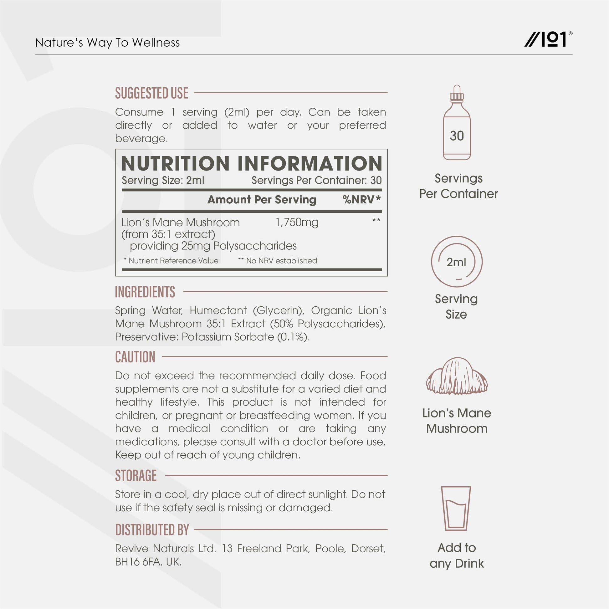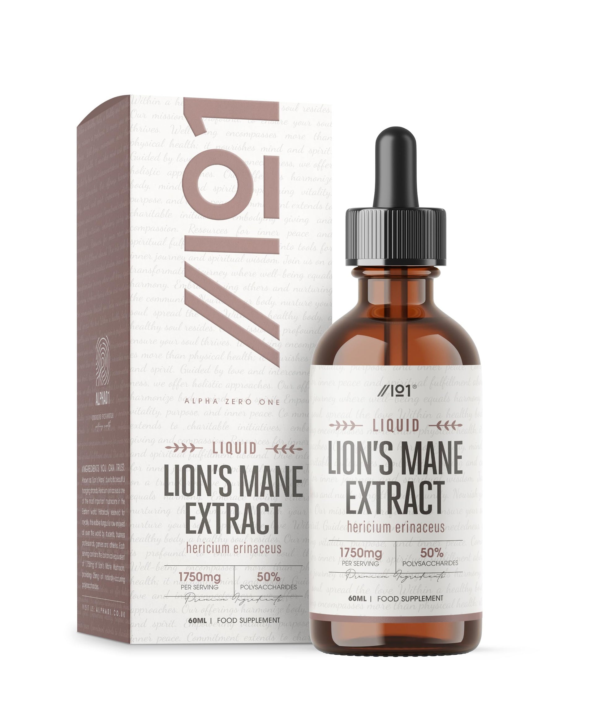 ALPHA01 Lion’s Mane Extract Liquid Drops 1750mg - High Strength 50% Polysaccharides Supplement (Not Capsules) - 60ml (1 Month Supply) - Vegan & Vegetarian Friendly – by Alpha01
