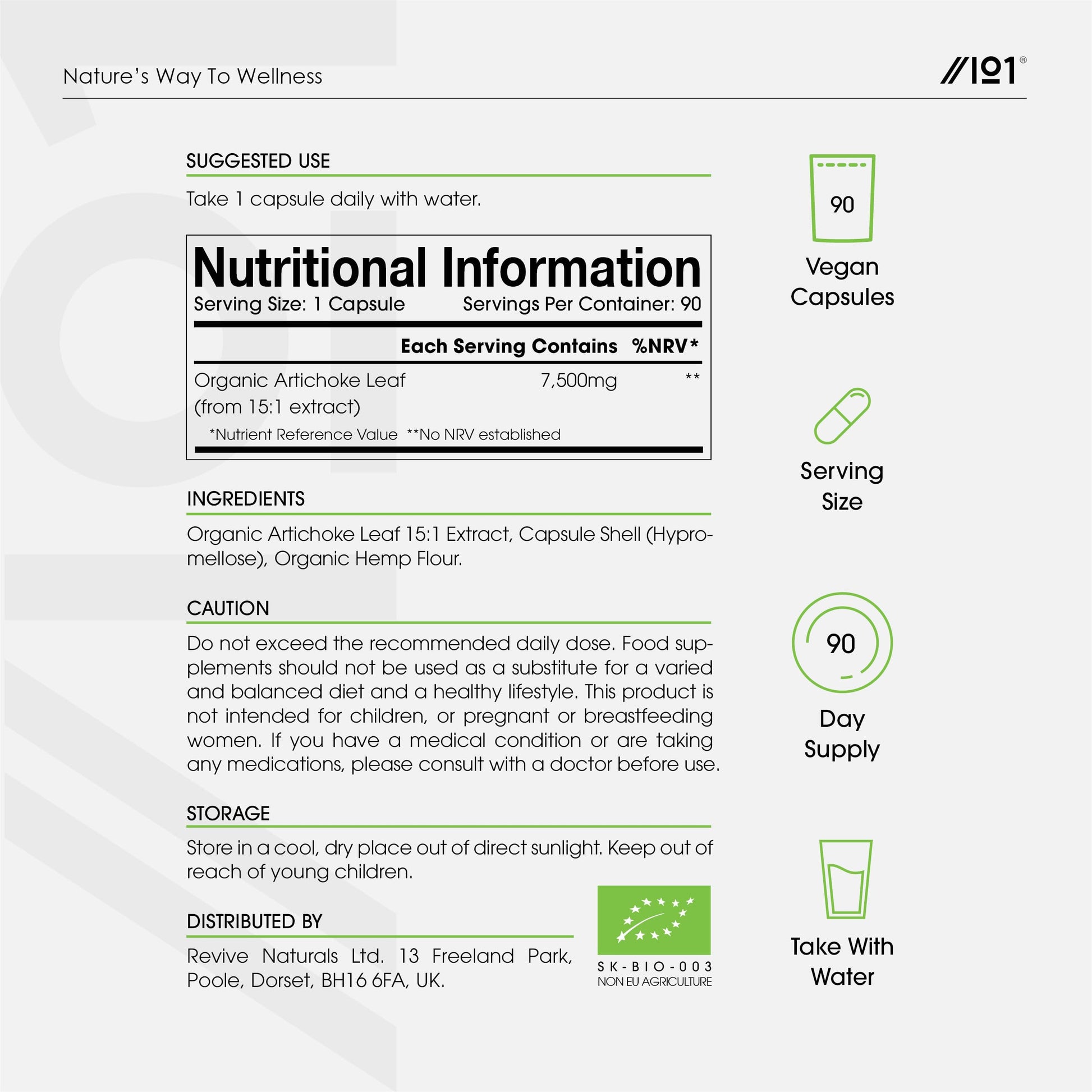 ALPHA01 Organic Artichoke Extract 7500mg - High Strength Cynara Scolymus Supplement - 90 Vegan Capsules (3 Months Supply) - Resealable and Recyclable Pouch - by Alpha01