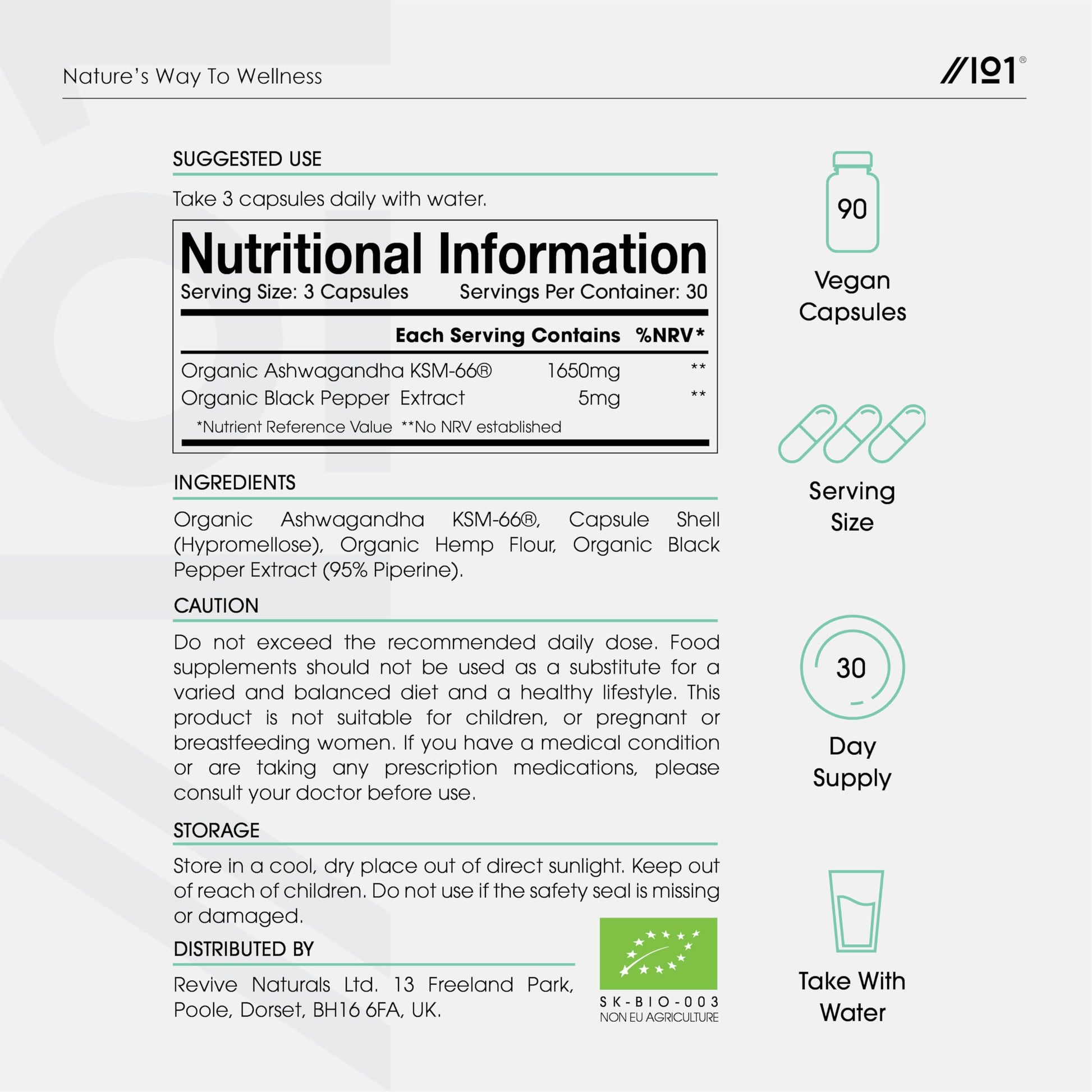 ALPHA01 Organic Ashwagandha KSM-66® with BioPerine® - 1650mg - 5% Withanolides - Most Bioavailable Full-Spectrum Root Extract - Not Tablets or Powder - 90 Vegan Capsules