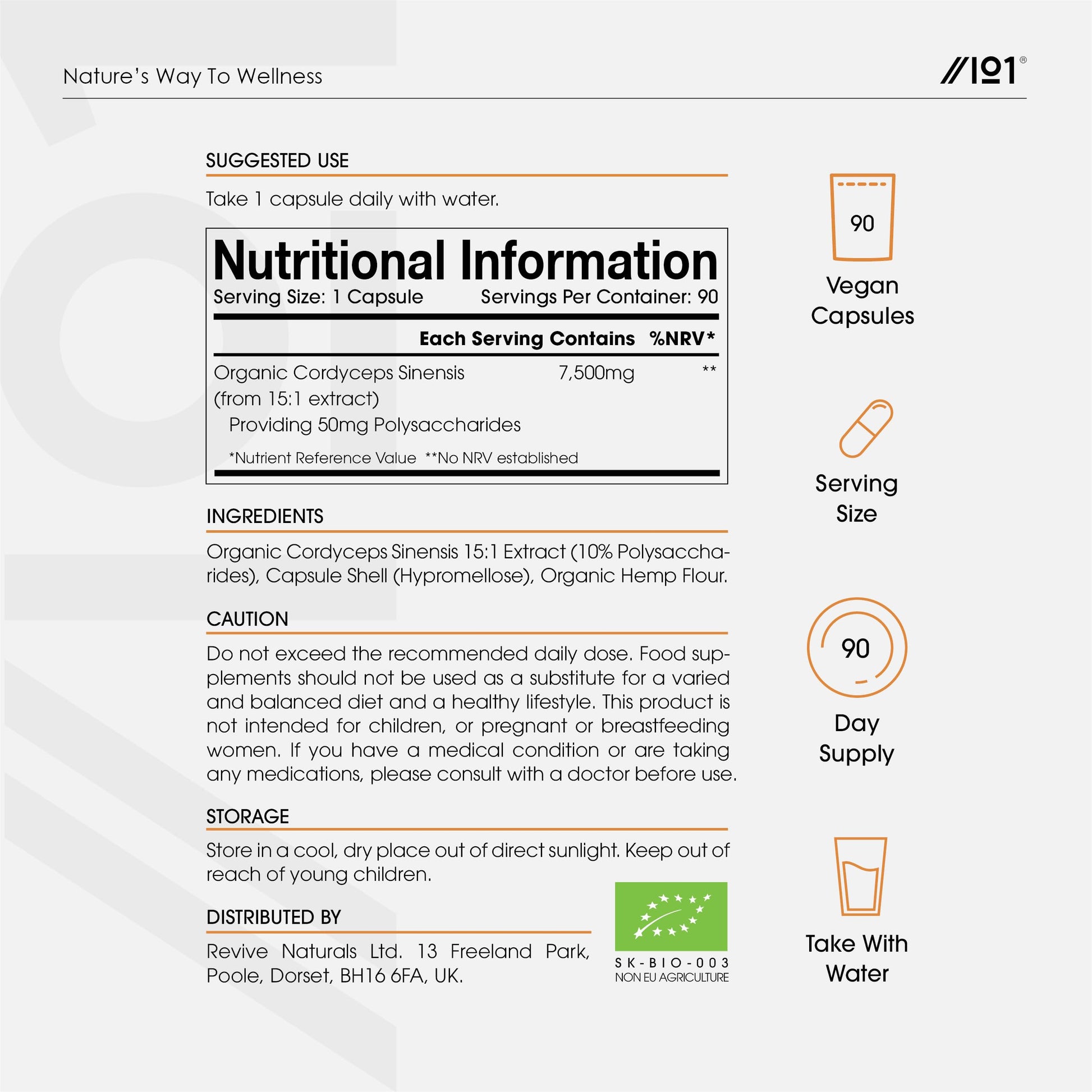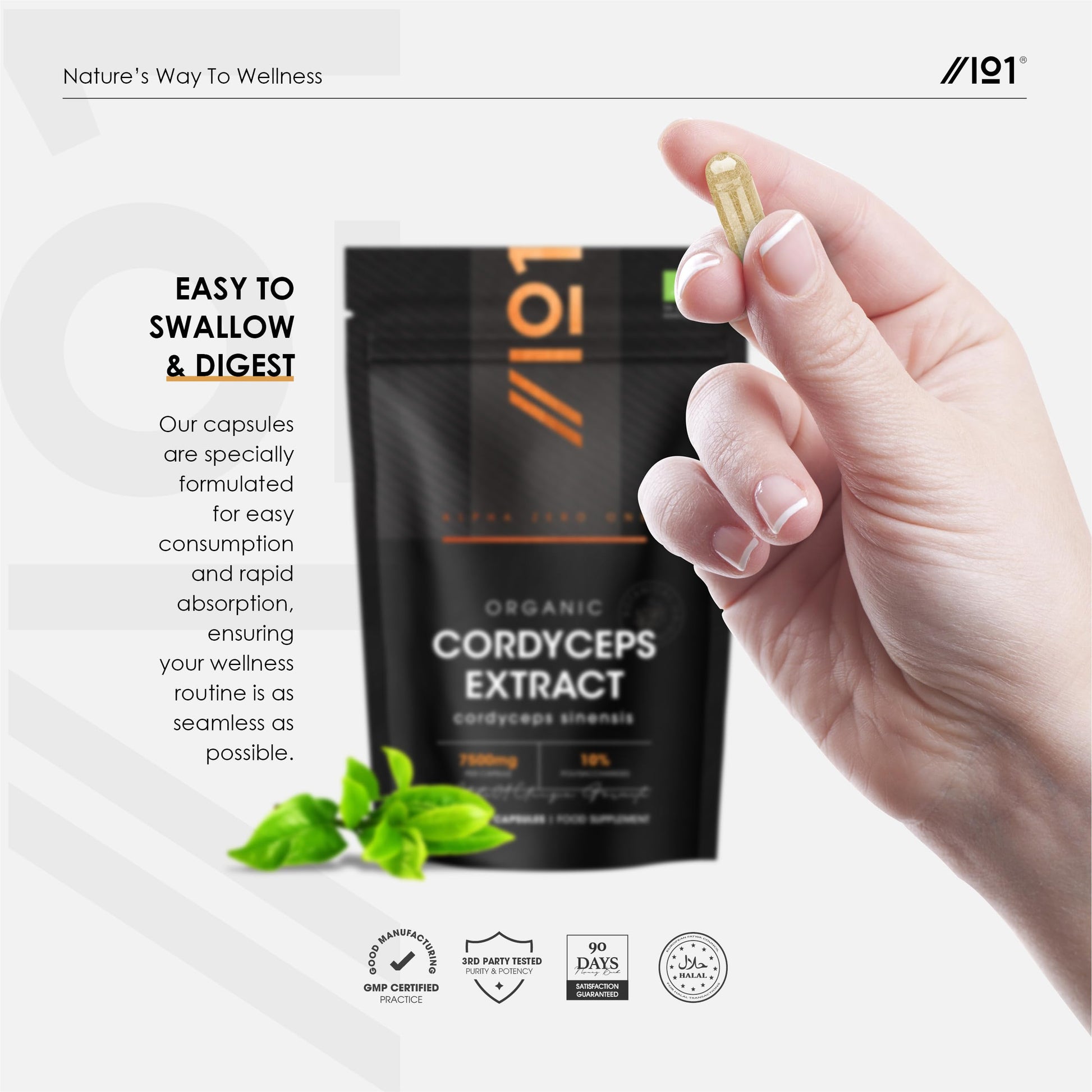 ALPHA01 Organic Cordyceps Mushroom Extract 7500mg – High Strength Polysaccharides Supplement – 90 Vegan Capsules (3 Months Supply) – Resealable and Recyclable Pouch – by Alpha01