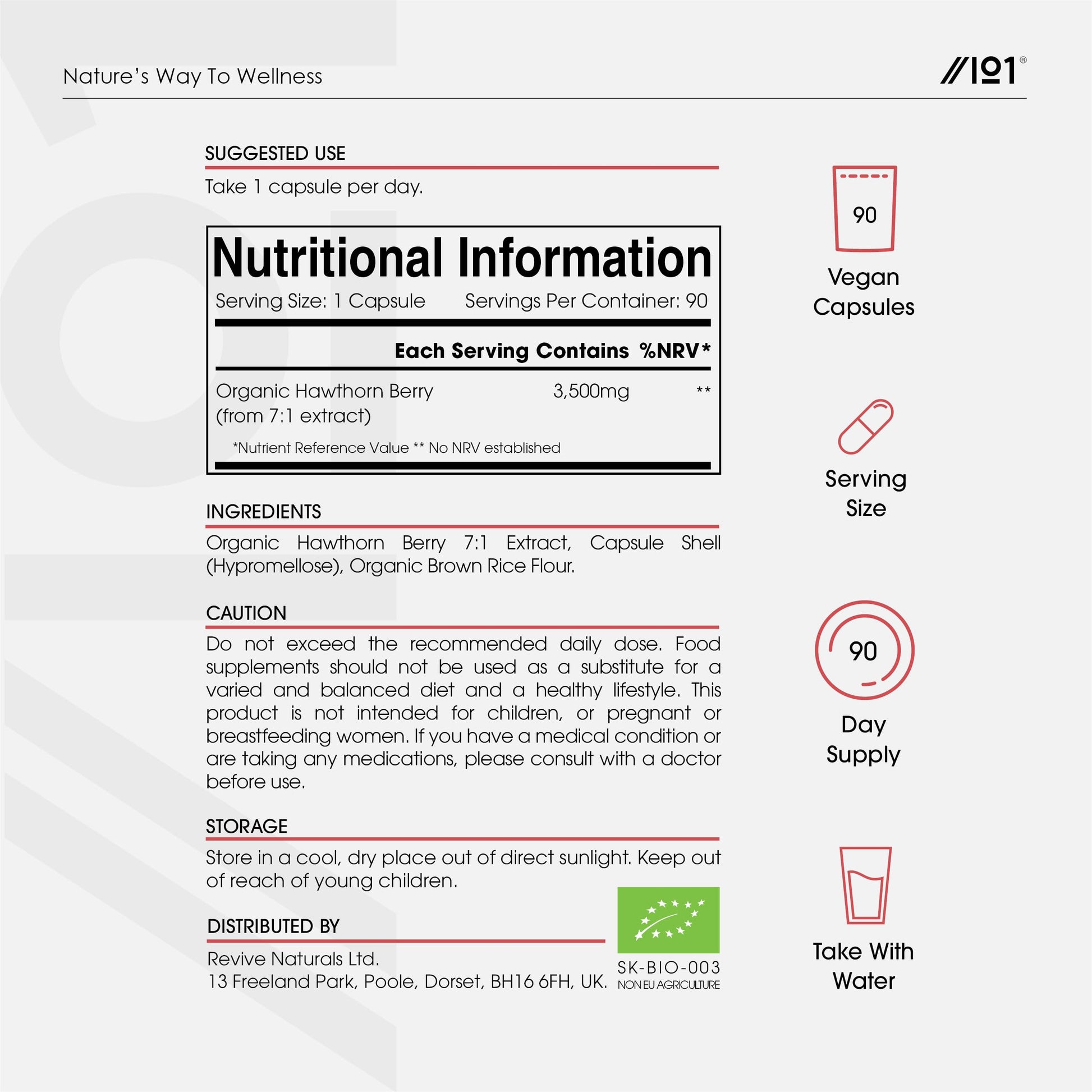 ALPHA01 Organic Hawthorn Extract 7500mg – 90 Vegan Capsules – High Strength Hawthorn Berry Supplement 15:1 Extract – Resealable and Recyclable Pouch by Alpha01