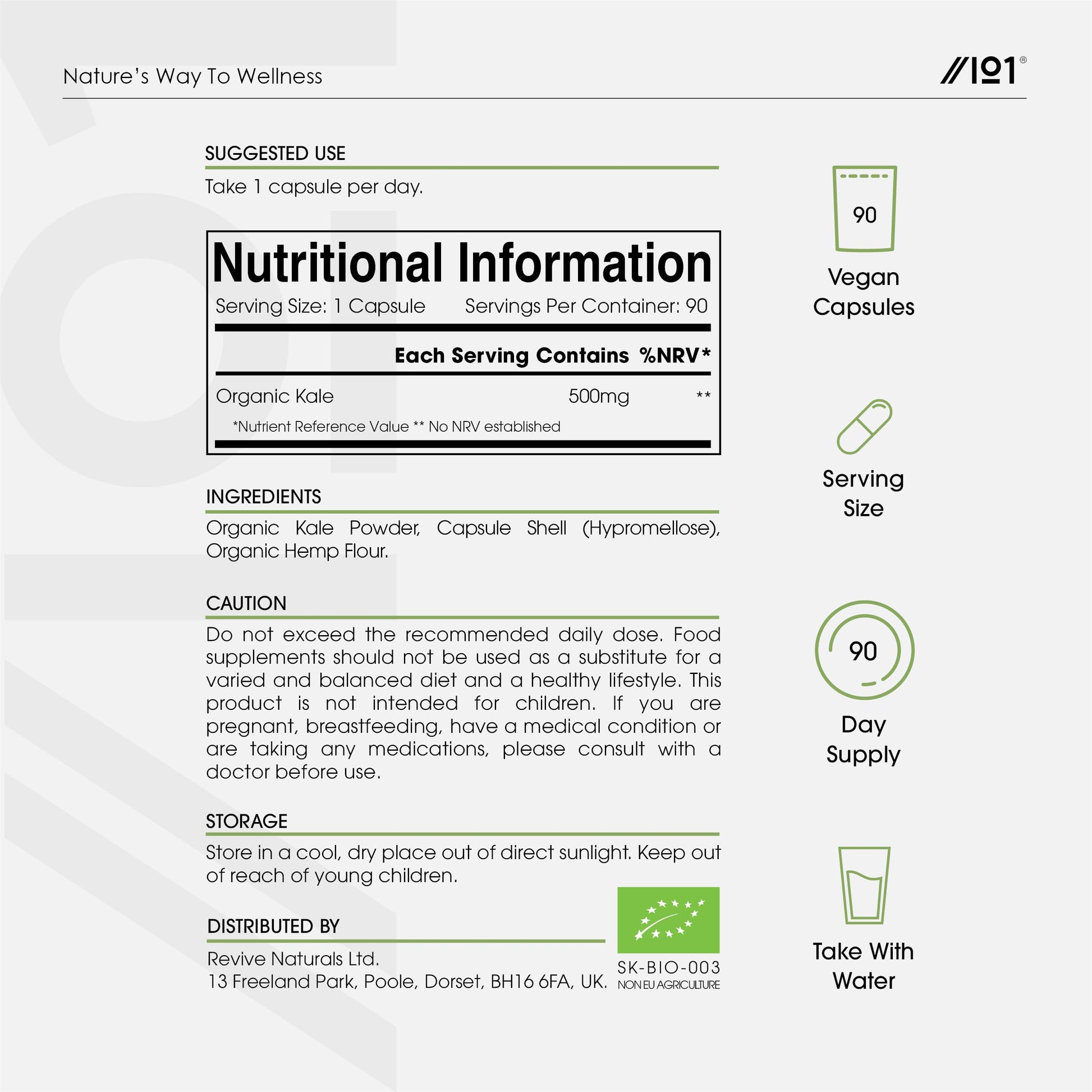 Kale is an earthy and slightly bitter leafy vegetable from the cabbage family. The plant is highly alkaline and one of the most commonly used ingredients in greens blends, health juices and smoothies all over the world. Each capsule contains 500mg of organic Kale for maximum purity, potency and performance.More Info