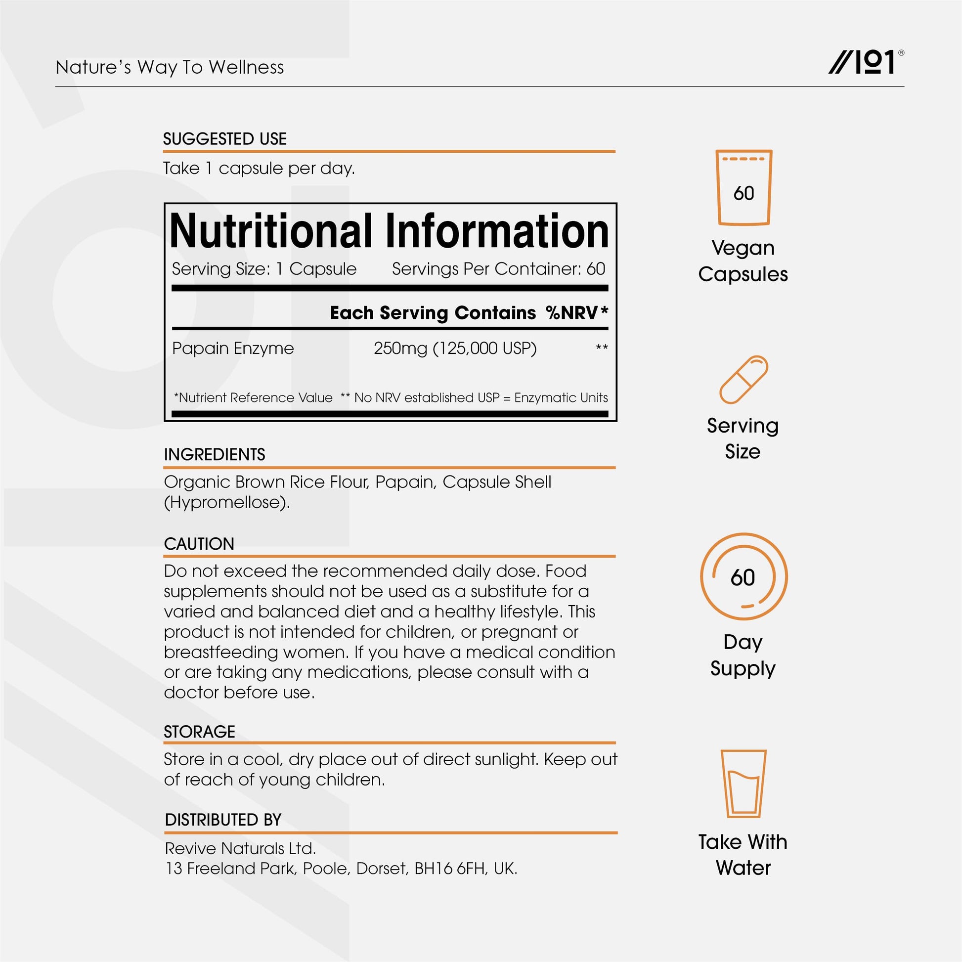 Papain is a proteolytic enzyme derived from papaya fruit. The enzyme breaks down proteins into their basic building blocks, such as peptides and amino acids. Each high strength capsule contains 125,000 enzymatic units of papain.More Info