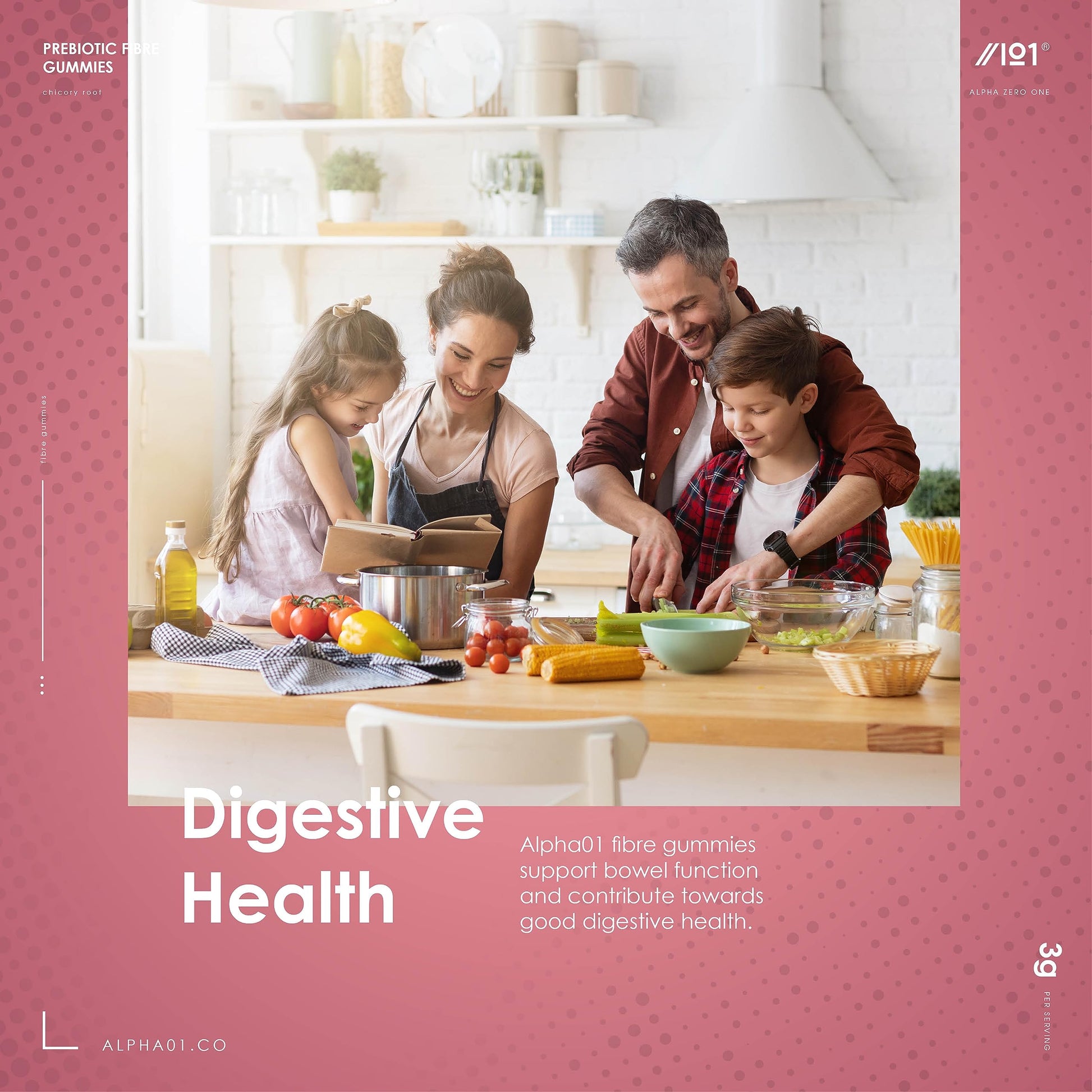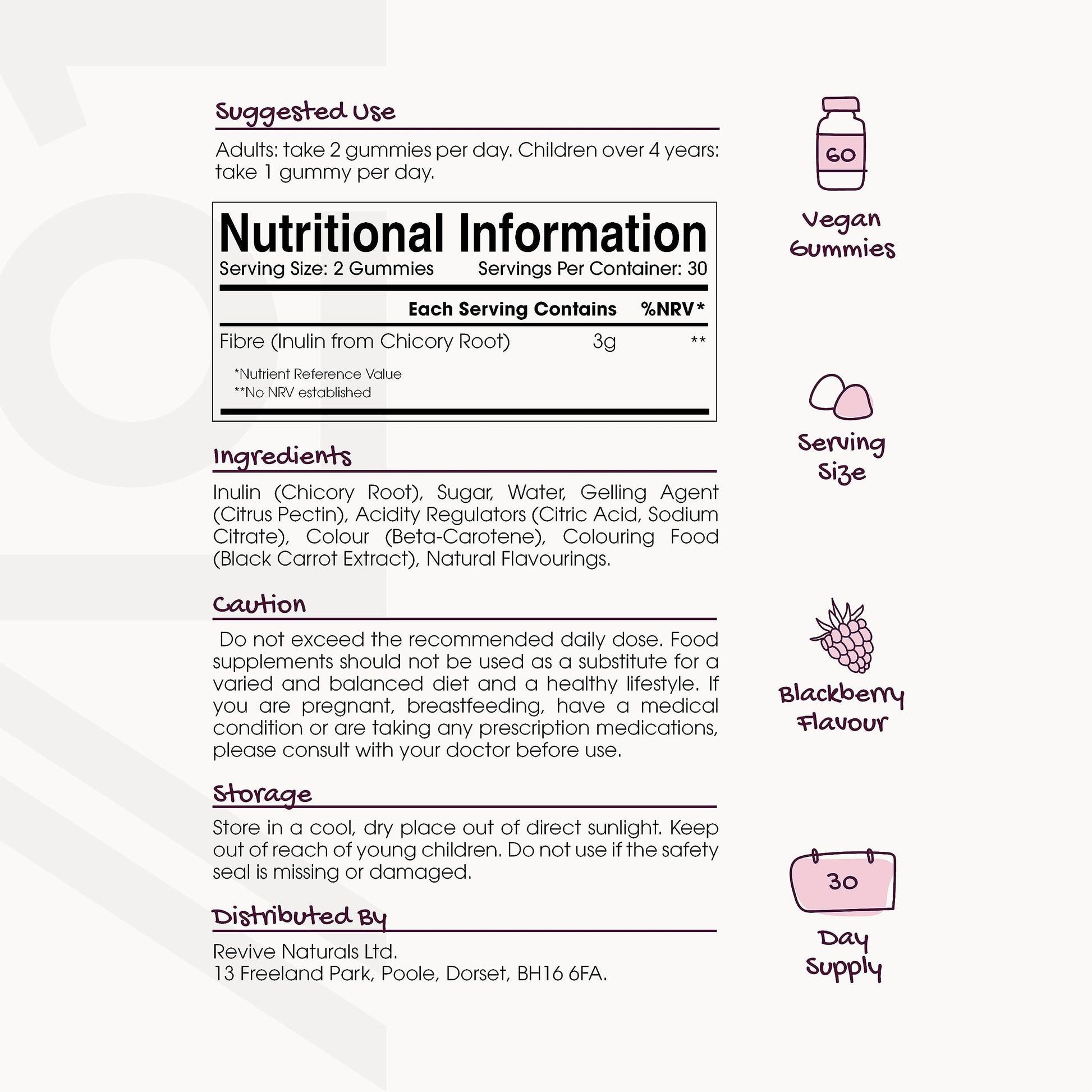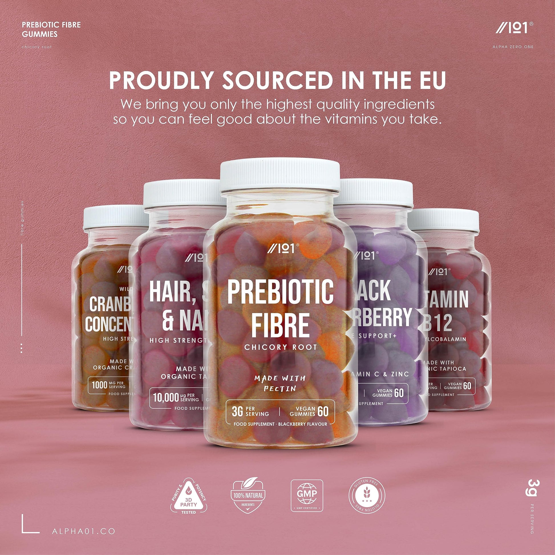 ALPHA01 Prebiotic Fibre Gummies - 3g - Chicory Root Inulin, BlackBerry, Strawberry & Peach Flavour - Kosher, Halal - 60 Vegan Gummies.