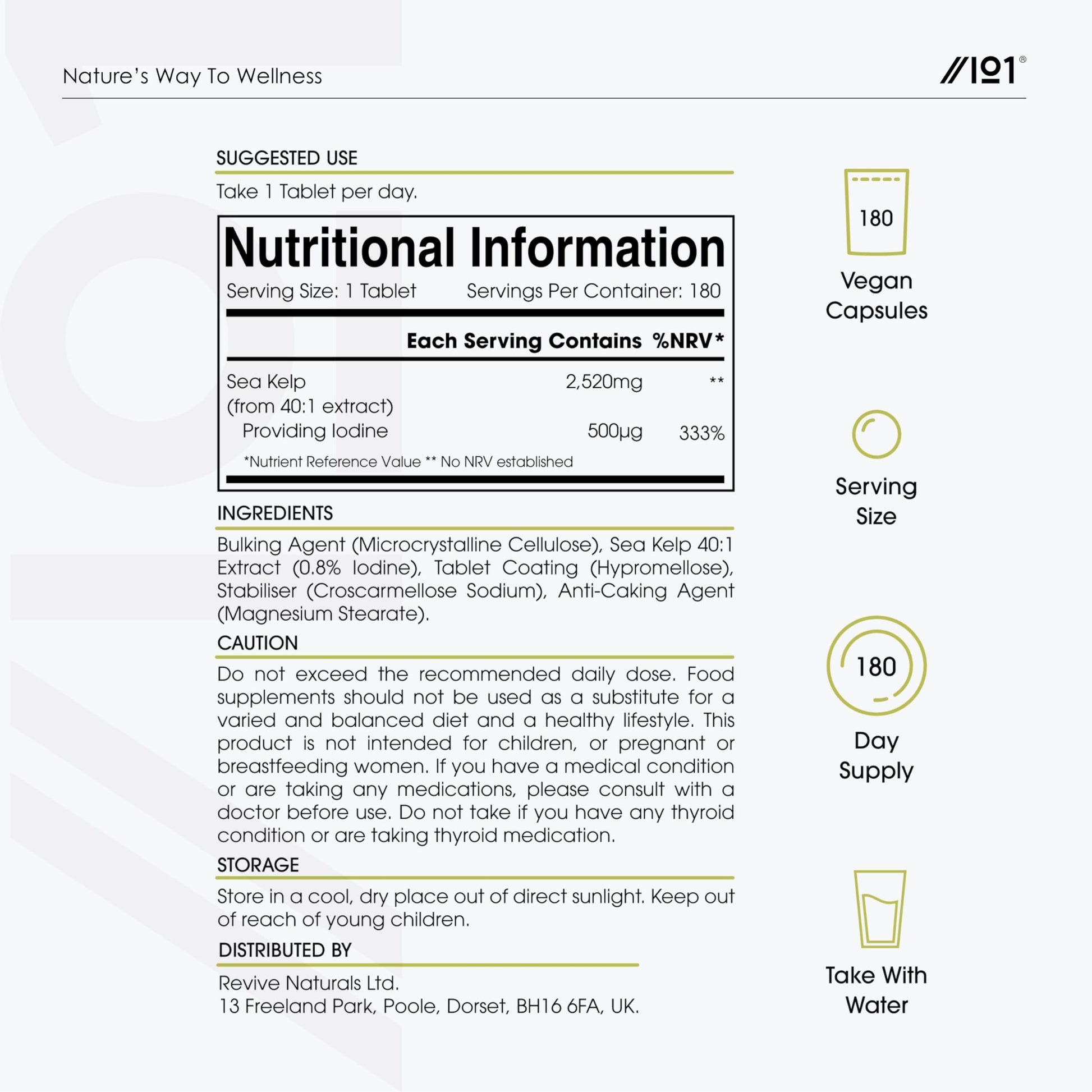 ALPHA01 Sea Kelp Extract 2520mg Tablets - 500μg Natural Iodine - 180 Vegan Tablets (6 Months Supply) - High Strength 30:1 Ascophyllum Nodosum Extract - Resealable and Recyclable Pouch by Alpha01