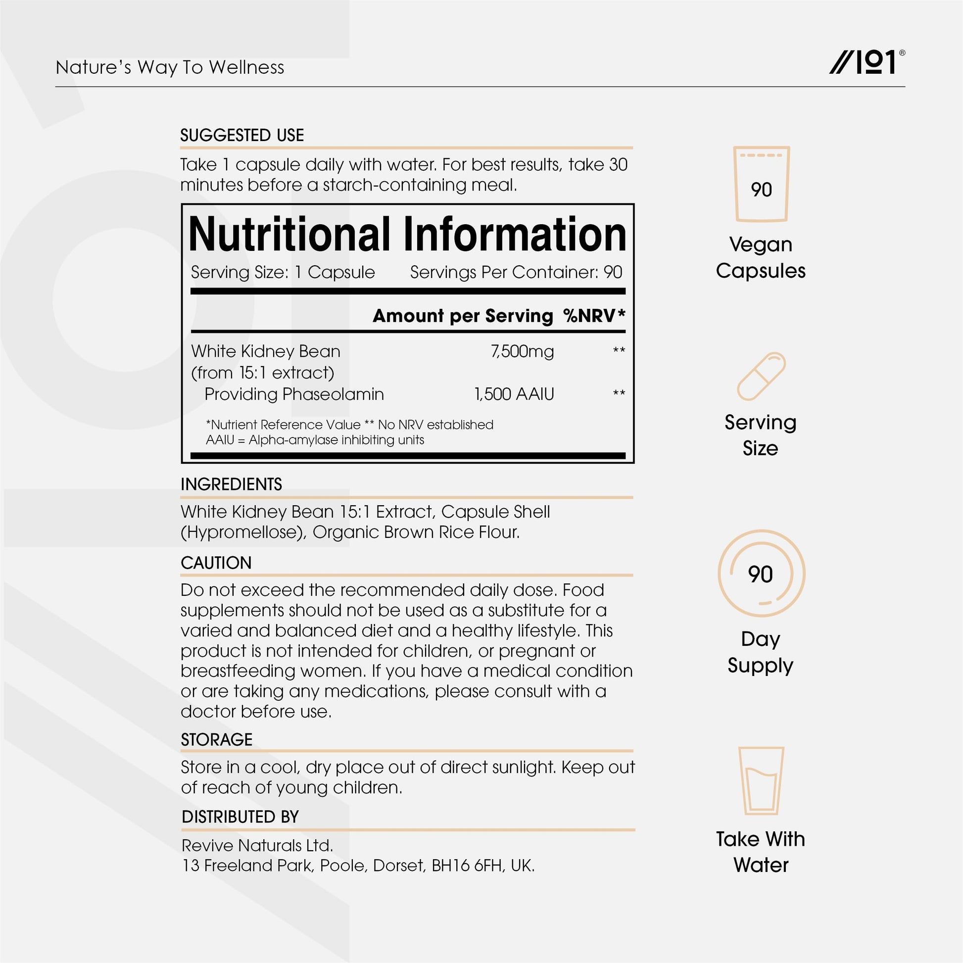 ALPHA01 White Kidney Bean Extract 7500mg – High Strength 1,500 AAIU Phaseolamin – 90 Vegan Capsules – Resealable and Recyclable Pouch – 3 Months Supply – by Alpha01