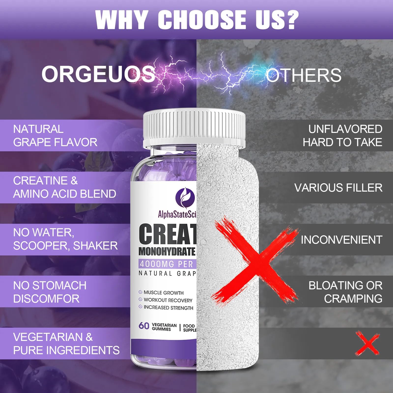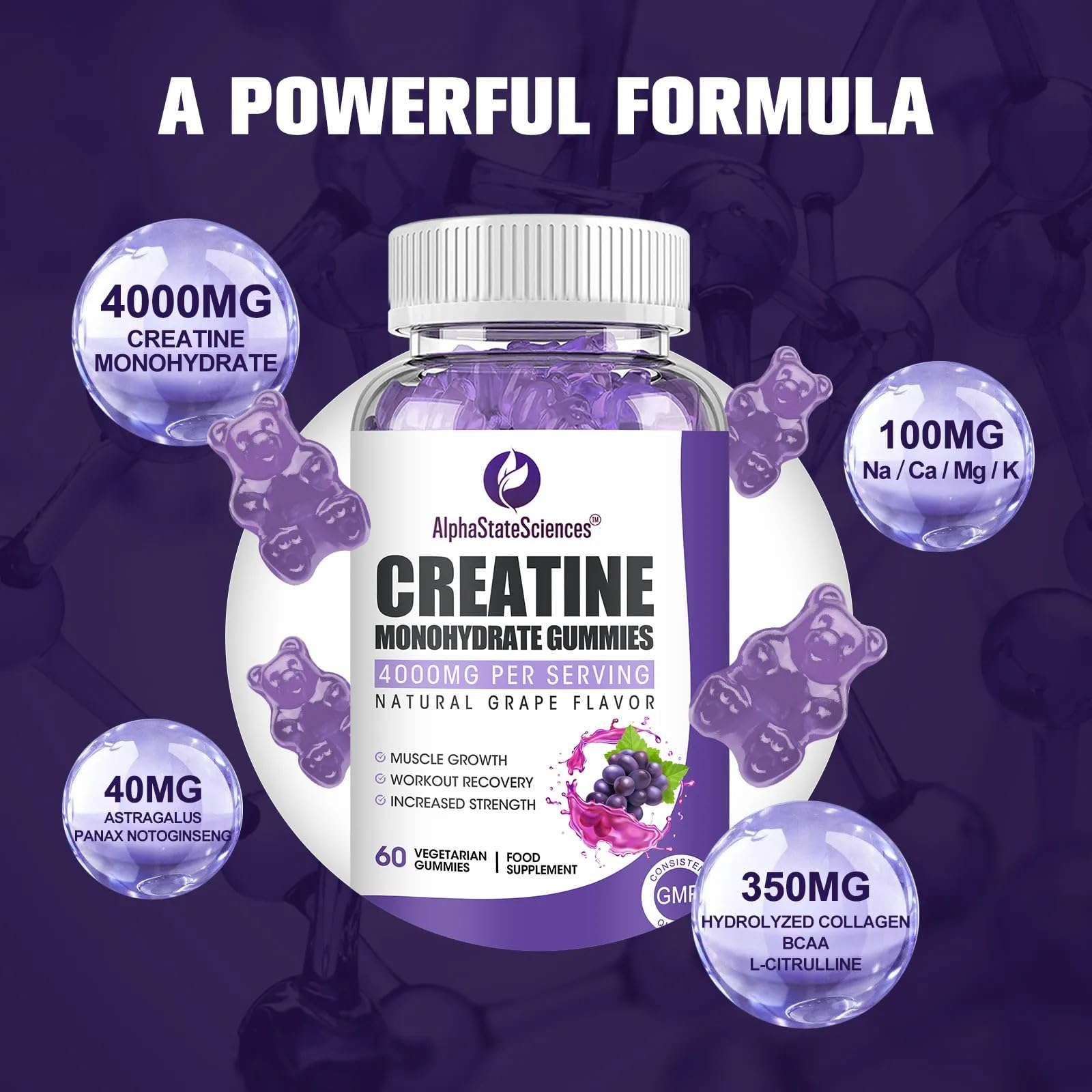 AlphaState Sciences Creatine Gummies - 4000mg Creatine with Calcium, Magnesium & Potassium, Strength, Endurance & Muscle Growth Supplement (60 Gummies)