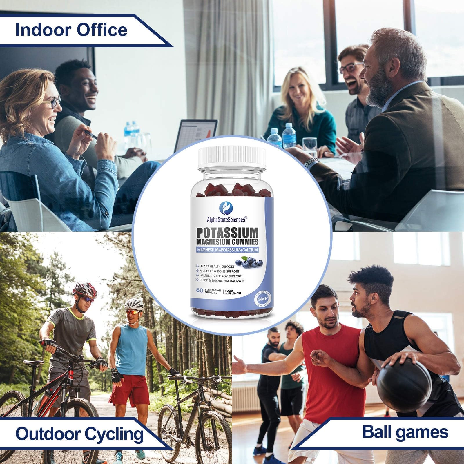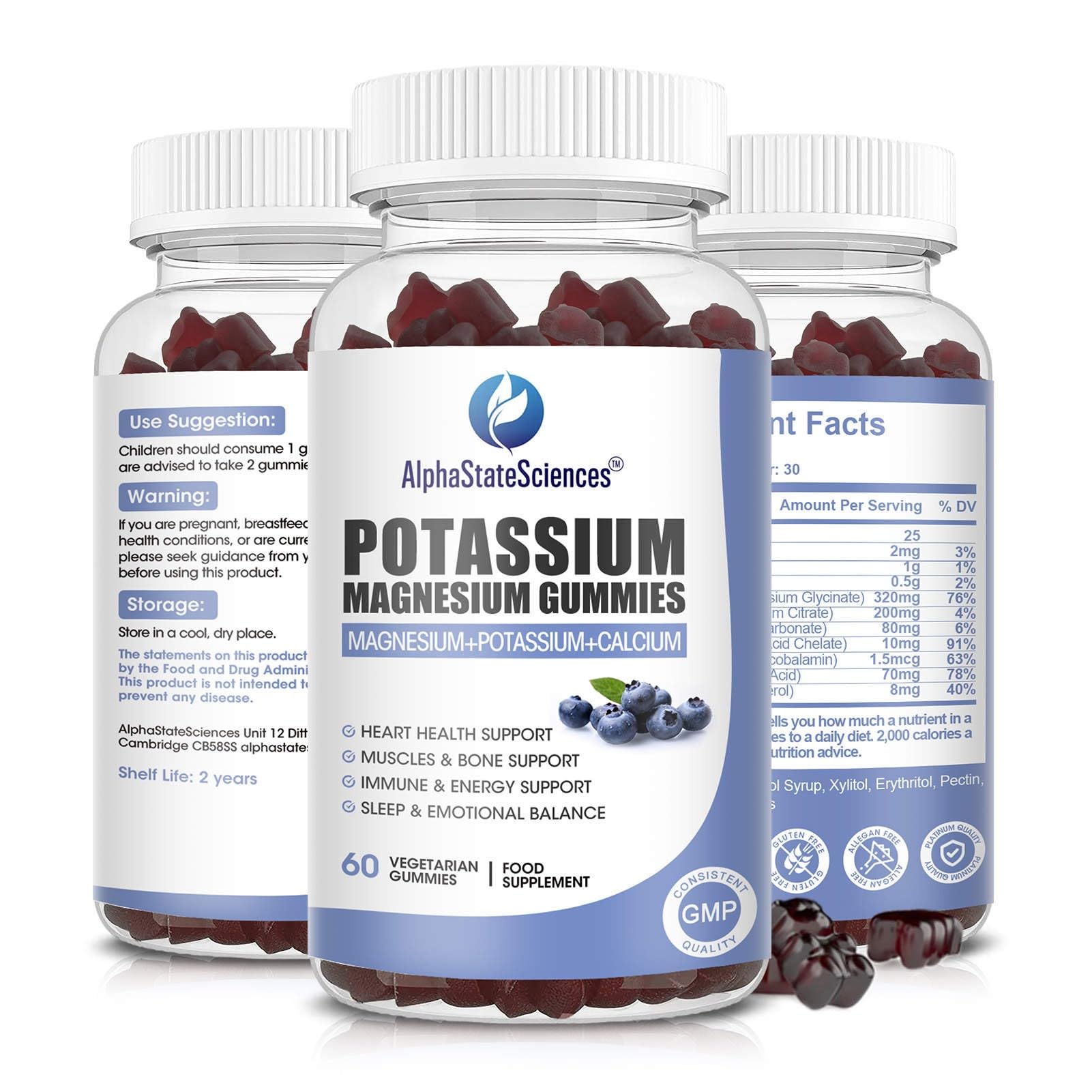 AlphaStateSciences Potassium Magnesium Gummies - Supports Muscle, Bone & Immune Health - 320mg Magnesium Glycinate, 200mg Potassium Citrate, 80mg Calcium Carbonate, 10mg Zinc, Vitamins B12, C, D3