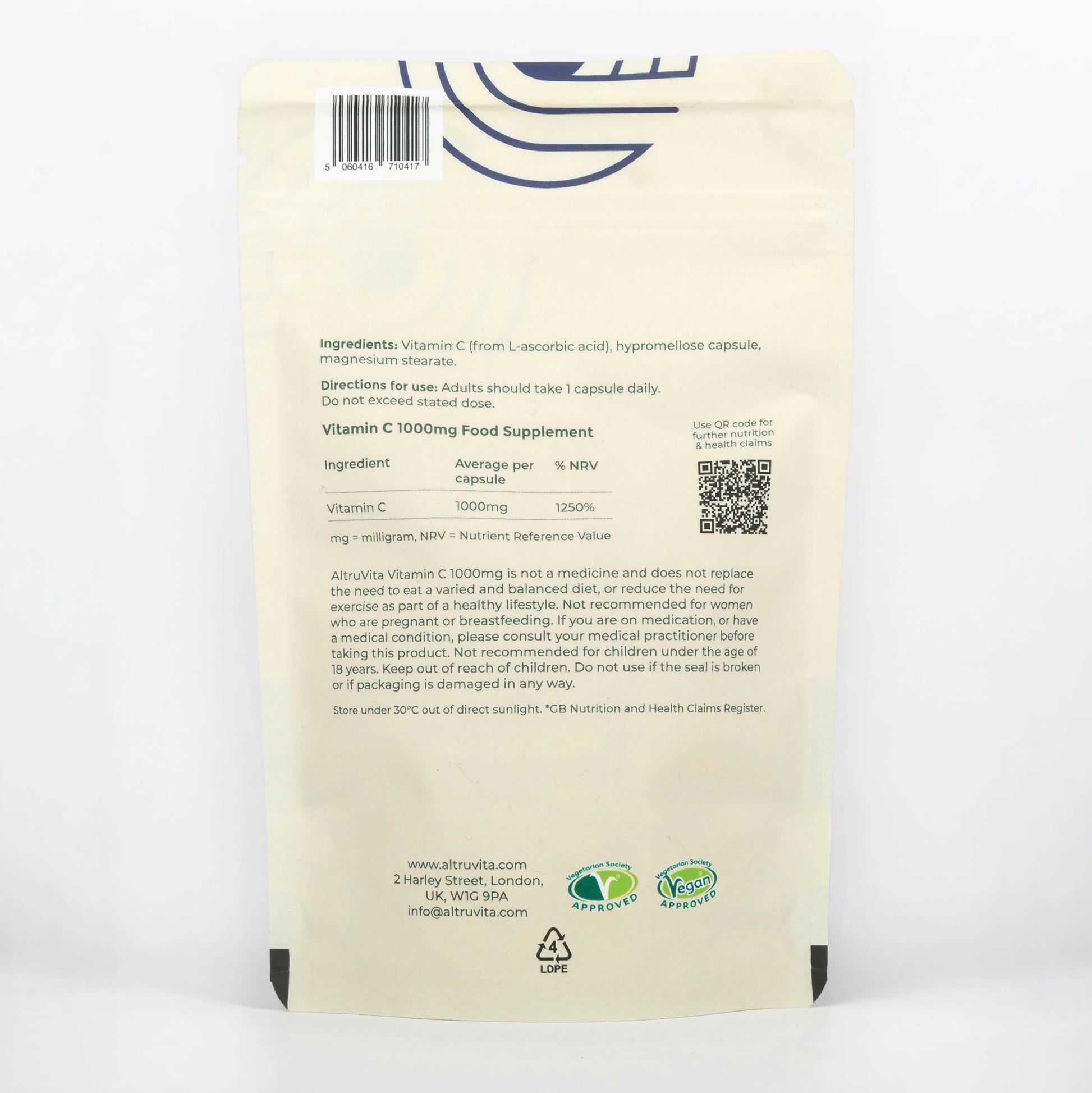 Why Choose AltruVita Vitamin C? Vitamin C contributes to the normal function of the immune system* and the protection of cells from oxidative stress.* Those who want to avoid colds or get well quickly often turn to our high strength Vitamin C supplement. Not only is a Vitamin C supplement used for physical health, but also mental, as it is also known to contribute to normal nervous system* and psychological function.* It helps reduce tiredness and fatigue through involvement in energy yielding metabolism.* It’s perfect for that much needed boost. "You should be able to get the required amount of vitamin C through your diet such as citrus fruits, broccoli and potatoes. Supplementation can be used in those whose diet is deficient. It is important for skin, cartilage, blood vessels and immune function" says medical Professor Martyn Caplin, BSc DM FRCP, head of the AltruVita Medical Advisory Panel. Vitamin C supplement contributes to normal collagen formation, and the normal function of bones, teeth, cartilage, gums and skin*, so you can look as good as you feel! Vitamin C aids also aids the absorption of other nutrients, for example vitamin C helps utilise another antioxidant, vitamin E*, and increases iron absorption from non-meat sources*. Vitamin C 1000mg is an essential part of your toolkit in keeping healthy all year around, even if you don’t take it every single day. Our Vitamin C 1000mg is approved by the Vegetarian Society and suitable for people following a vegetarian or vegan diet. *GB Nutrition and Health Claims RegisterMore Info