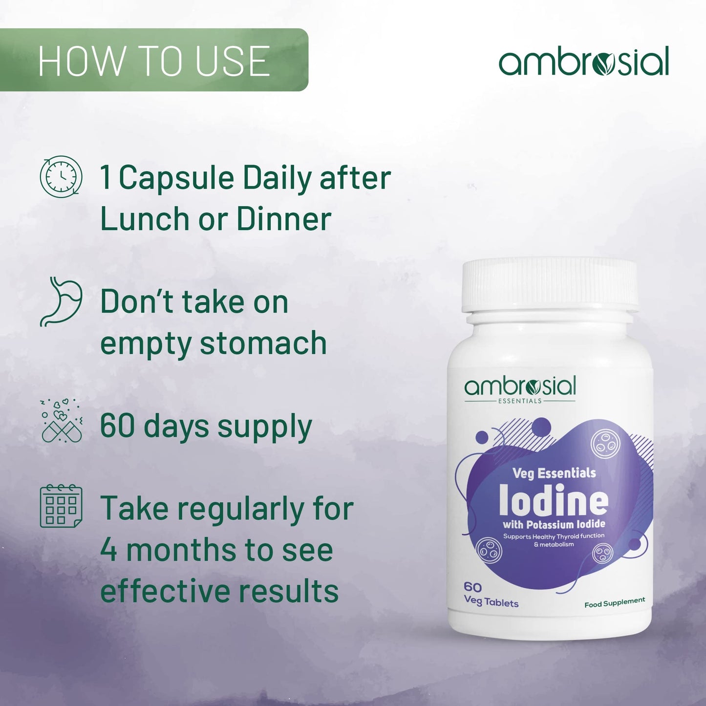 AMBROSIAL Ambrosial Iodine Supplement 5000mcg with 7500 mcg Potassium Iodide| High Strength Iodine Tablets | Natural Source of Iodine from Potassium Supplements & Iodide Tablets (Pack of 2-120 Tablets)