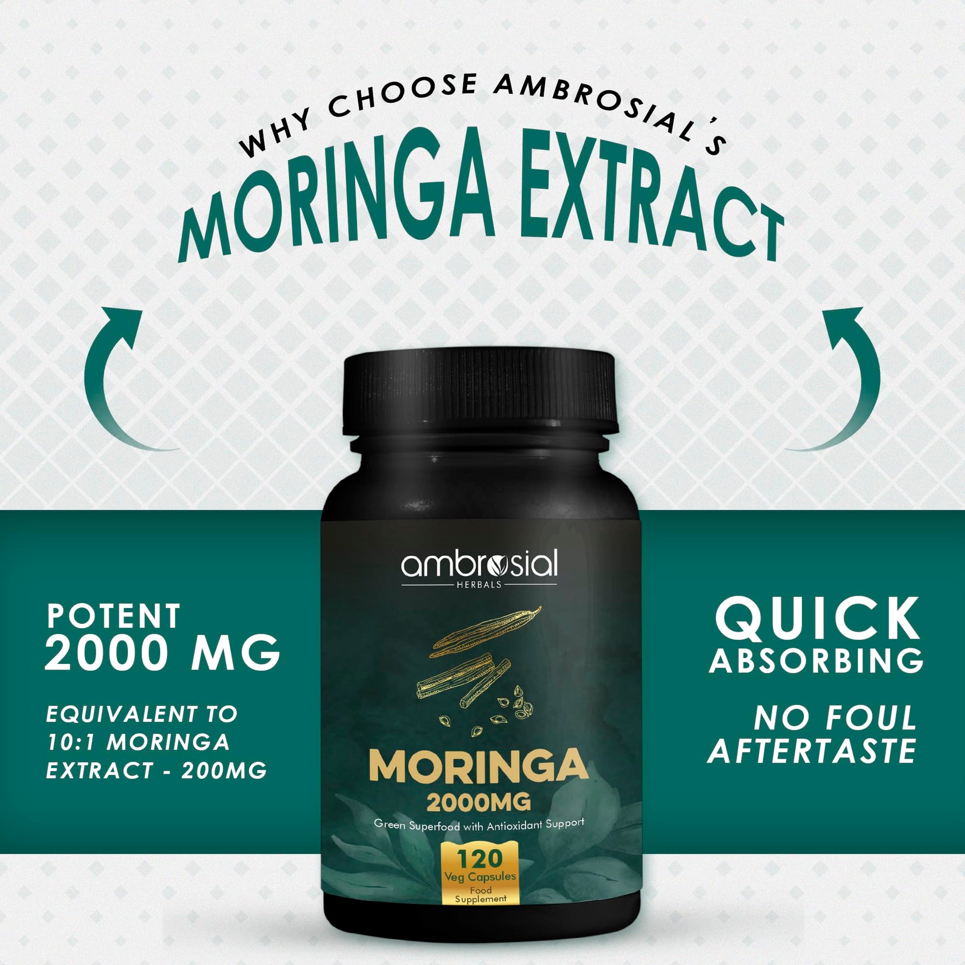 AMBROSIAL Ambrosial Premium Organic Moringa Capsules 2000MG - High Strength Antioxidant Superfood Supplement for Energy and Wellness - 120 Veg Capsules