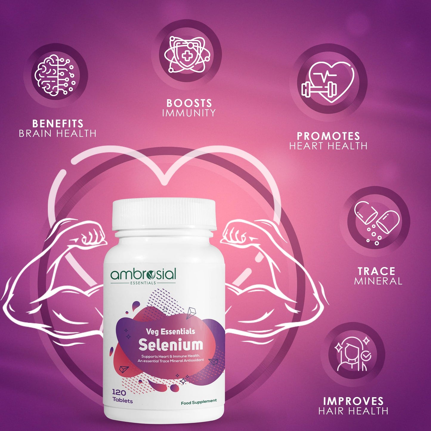 Unlock the secret to vibrant hair, strong nails, and glowing skin with Ambrosial Hair Supplements for Women. Each bottle contains 120 tablets, providing a full 4 months of unparalleled beauty and wellness support. Our scientifically formulated hair and nails vitamins for women are designed to deliver a potent dose of 200 mcg of selenium per tablet, ensuring you get the trace mineral your body needs with just one tablet daily. Selenium is an essential nutrient known for its powerful antioxidant properties. It plays a vital role in maintaining a healthy immune system and supporting thyroid function. Ambrosial’s selenium supplements are crafted with L-Selenomethionine and Selenomethionine, offering superior absorption and effectiveness. Our vegan and gluten-free formula ensures that our hair vitamins are suitable for everyone. Whether you’re looking to boost your immune system, support your thyroid, or enhance your skin, hair, and nail health, Ambrosial has you covered. Our supplements for women are meticulously crafted to provide you with the finest ingredients for optimal results. For those who struggle with hair and scalp issues, our supplements can be a game-changer. Though not a selenium sulfide shampoo, the internal support provided by our skin hair and nail vitamins can complement your external care routine, leading to more effective results. Imagine the confidence that comes with knowing your hair is stronger, your nails are less prone to breaking, and your skin has a radiant glow. Don’t compromise on quality when it comes to your health. Trust Ambrosial selenium supplements to deliver the nutrients you need in a convenient, vegan, and gluten-free package. Elevate your wellness journey today with our premium skin supplements and hair and nails vitamins for women. Ambrosial—where health meets beauty.More Info