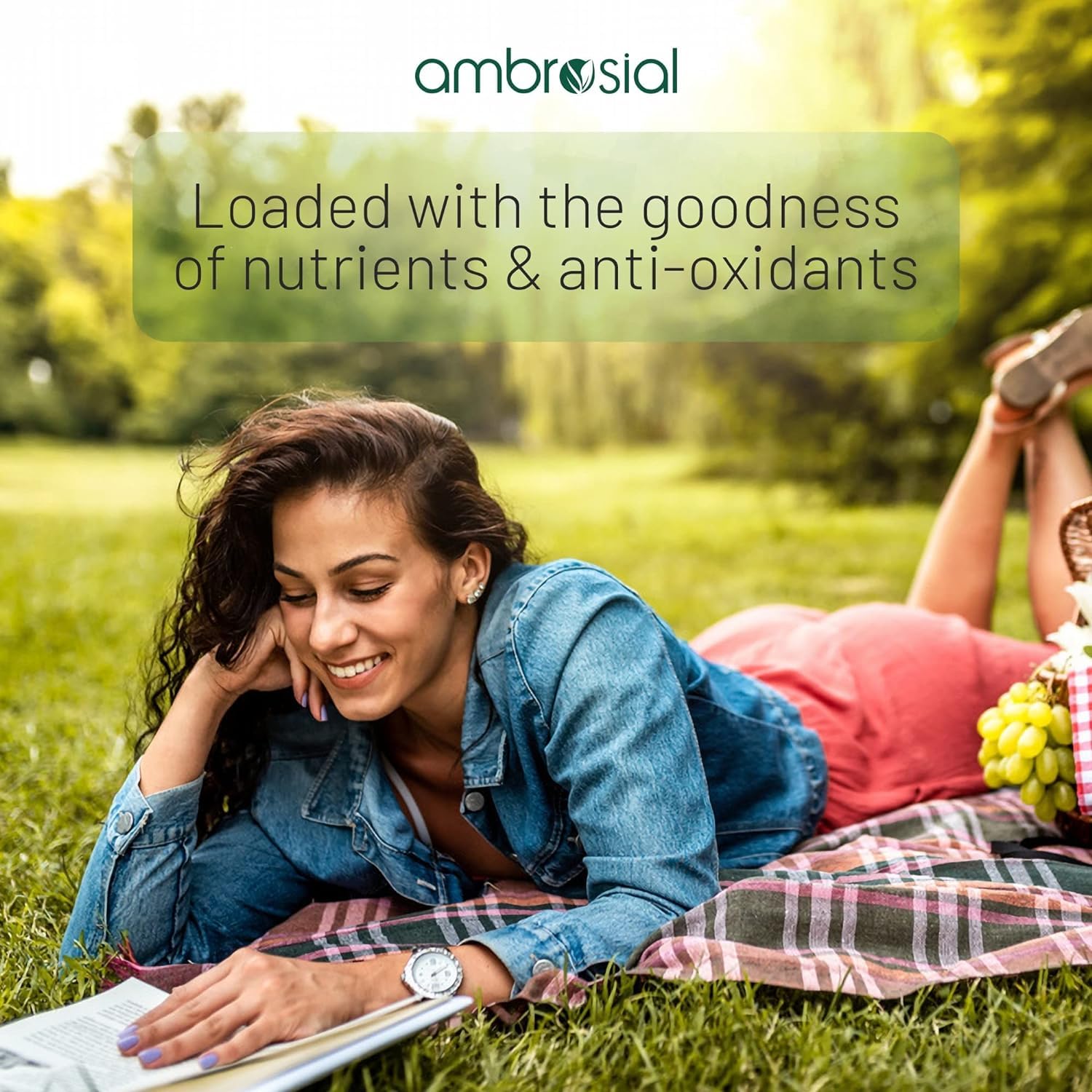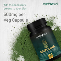 AMBROSIAL Ambrosial Spirulina Capsules | Highly Dosed- 500 mg | Certified Spirulina Tablets| No Additives & 100% Vegan | Rich Source of Protein, Vitamins & Minerals (Pack of 1-120 Capsules)
