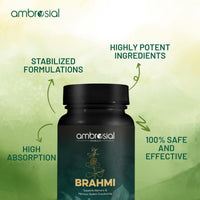 Belonging to the community of therapeutic herbs, Brahmi has uncountable health benefits. It is usually said to be a perennial non-aromatic herb with small white flowers. Mostly grown in wet tropical regions, Brahmi can also thrive underwater. Known for its brain-boosting properties, Brahmi may help in stimulates the brain in terms of memory and concentration. Ambrosial’s Brahmi Capsules may benefit respiratory health . Brahmi is also known for modulating blood sugar levels and contains plenty of antioxidants that may help in boosts immunity. It may lower stress and anxiety and improves cognitive ability in an individual. Ambrosial prepares all the products with love and care and retains our potency for the best quality of products. Ambrosial’s Brahmi, the memory booster capsules are a product of our extreme care towards every individual’s health. Our advanced and hygienic processing methods and 100% natural ingredients make them the finest quality products and it is a great ayurvedic medicine for mental fitness as well as physical. Prevents Cognitive Disorders- Brahmi, when consumed regularly, may prevent various cognitive disorders like memory loss and difficulty in concentration. Brahmi contains Bacosides compounds that may help in lowering stress and thus results in a healthy brain. Gives a Peaceful Mind- Being a refreshing herb, it may help to a peaceful and calm mind. It may help you in reduces the levels of cortisol (stress-producing hormones) and makes your mind stress and anxiety-free.More Info