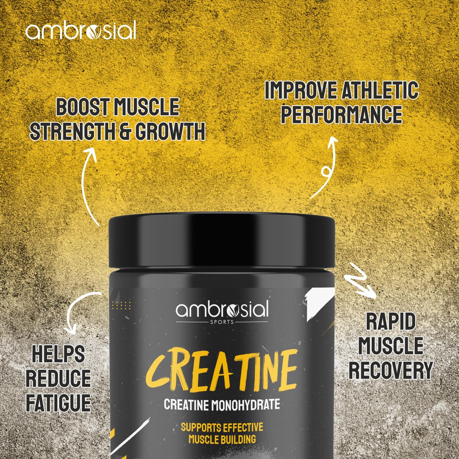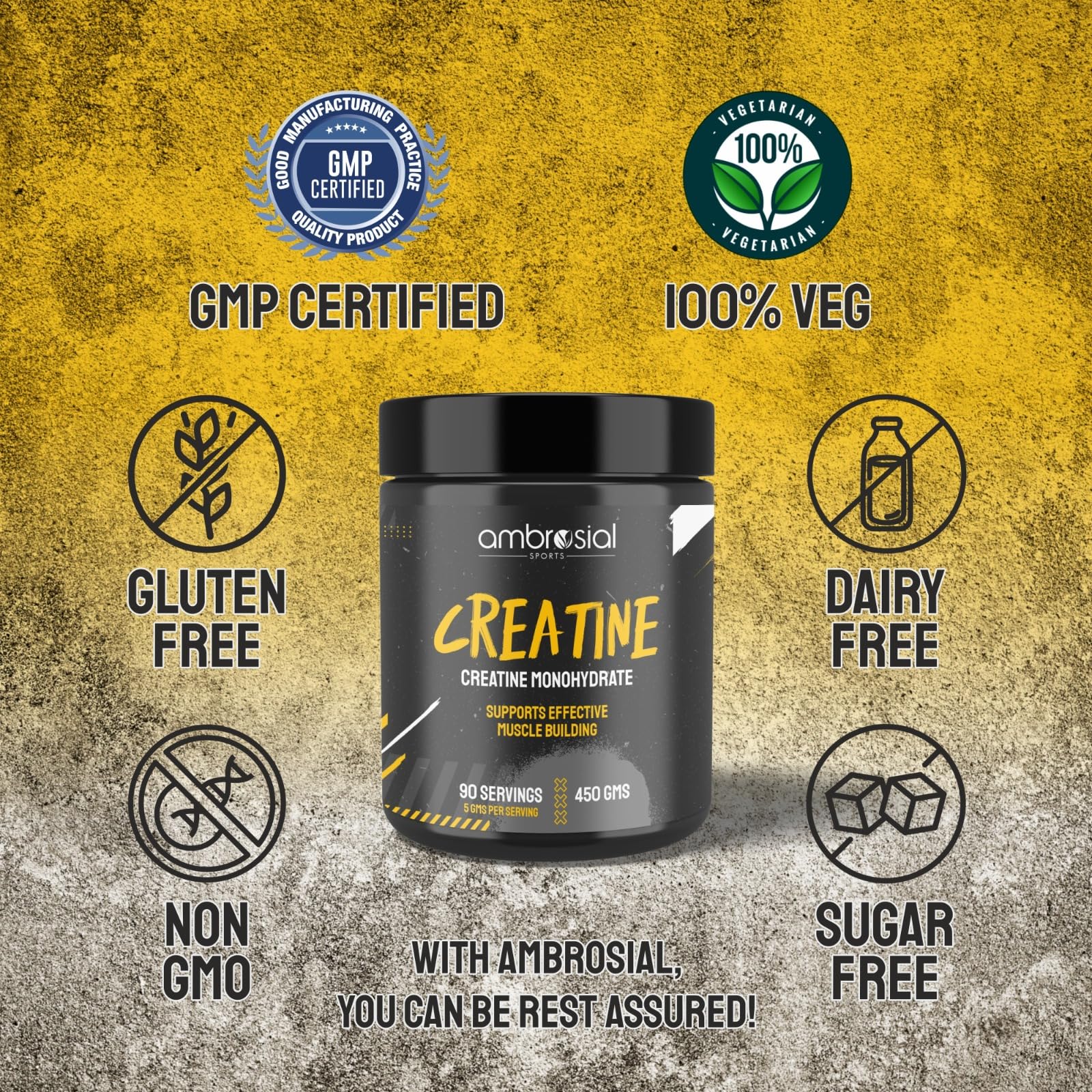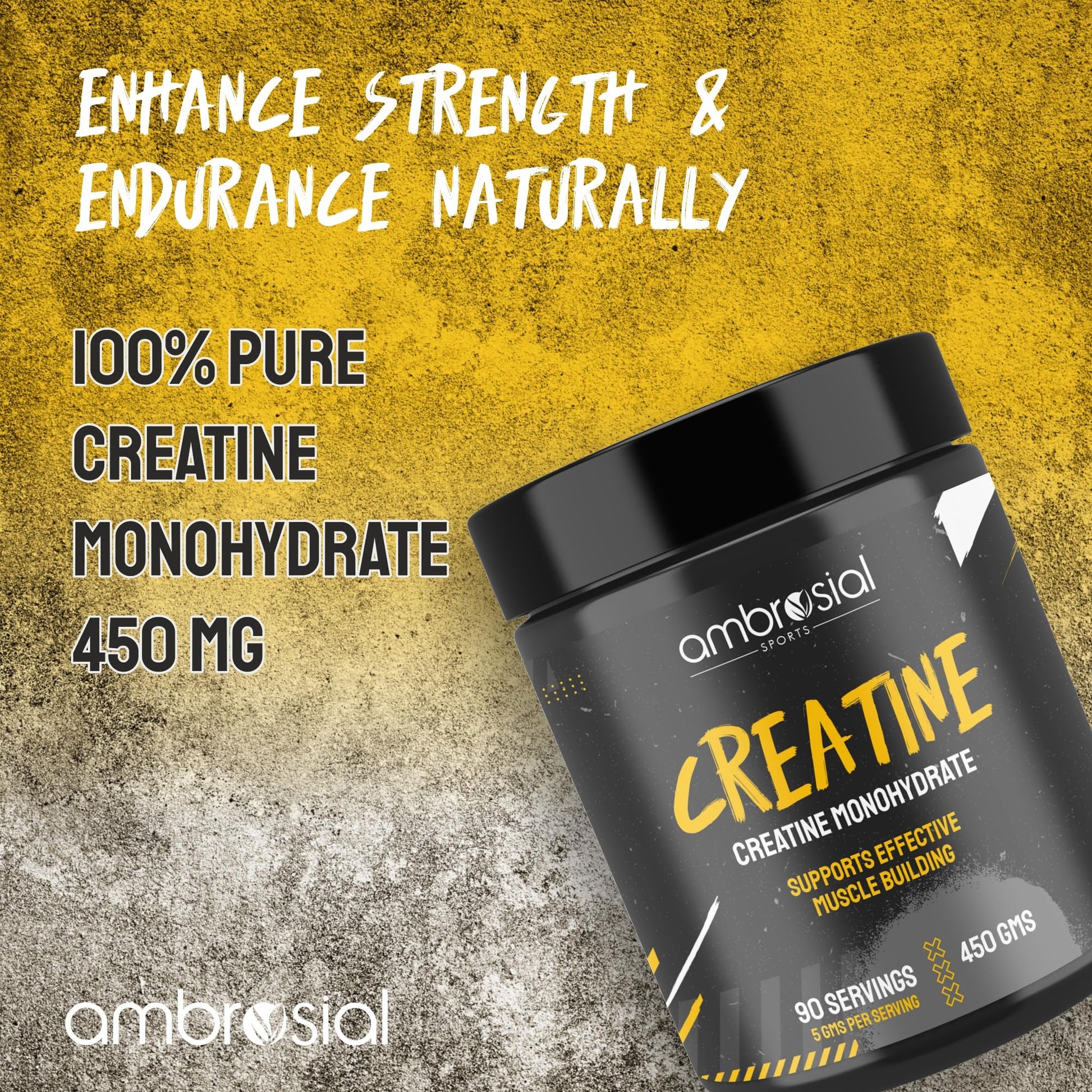 Ambrosial Creatine Monohydrate 450mg | Pure Muscle Power Boost | Enhance Strength & Endurance Naturally |Creatine Supplement for Fitness & Bodybuilding | Non-GMO & Gluten-Free | 90 Servings