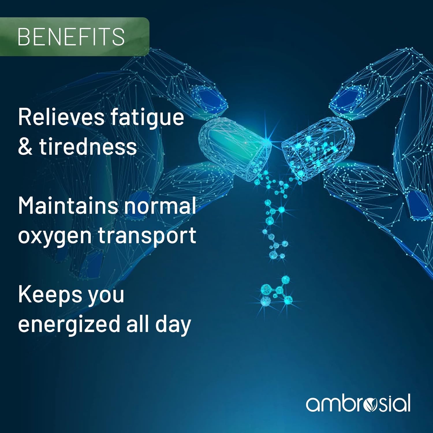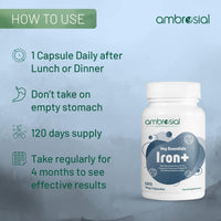 - High Absorption: Ambrosial Iron+ Increases the body's ability to absorb iron for effective body functioning.