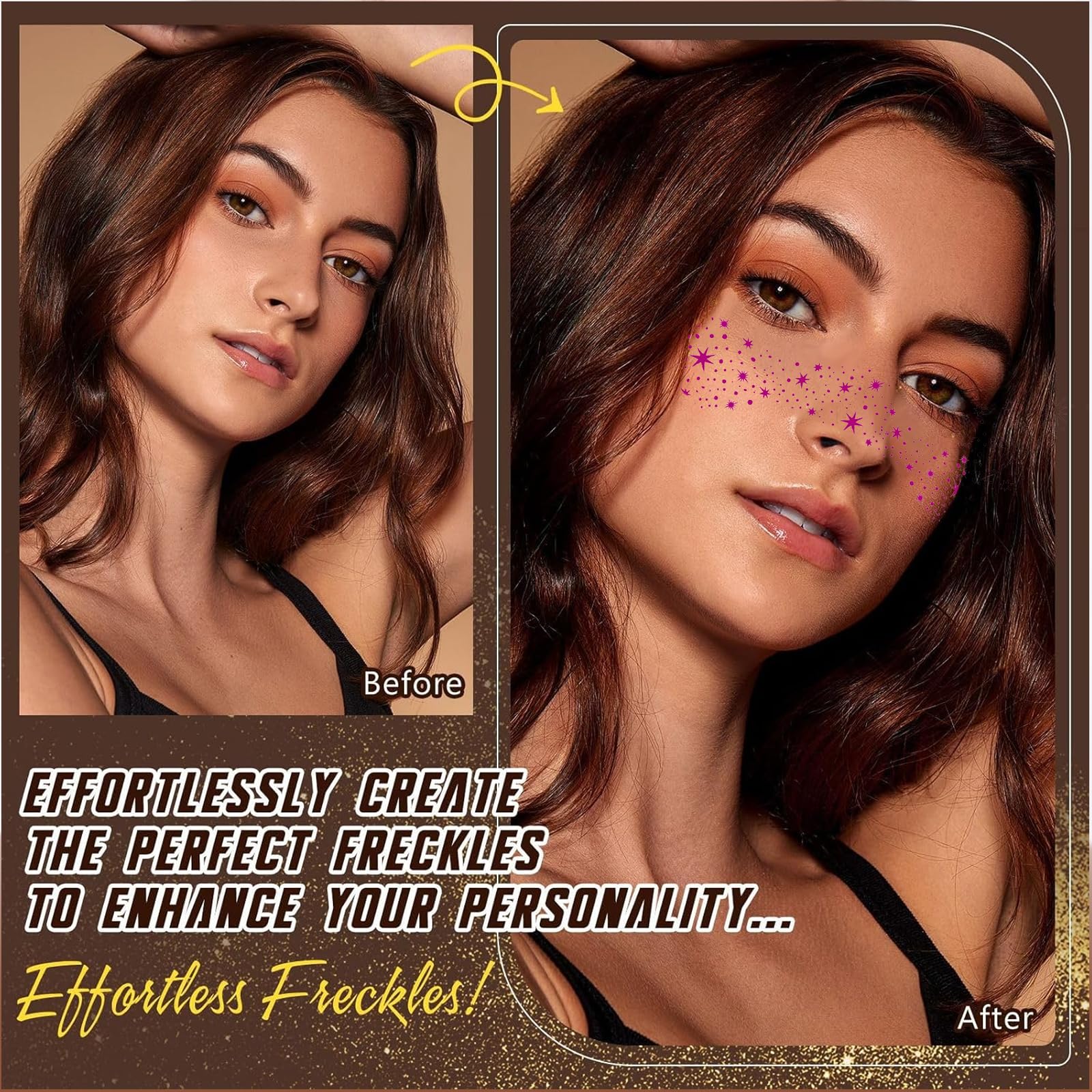 4. Safe, Waterproof, & Long-Lasting: Worried about skin safety or makeup meltdowns? Breathe easy! Made with gentle, skin-friendly materials (safe for all skin types), the star glitter freckles are WATERPROOF. Rain, workouts, pool days—they stick around for 24+ hours of shimmer. Dance in the rain, sweat at the gym, or lounge by the pool—your freckles stay flawless.