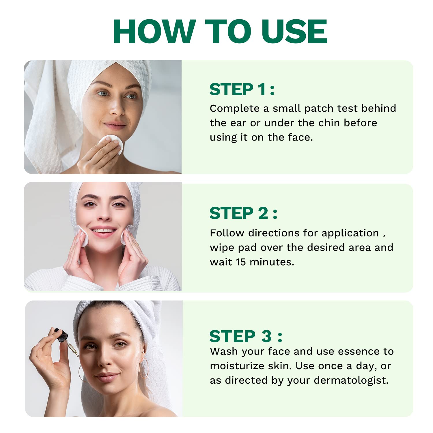 - SAFE & EASY TO USE -- This cleansing pads for face use easily. 1. Complete a small patch test behind the ear or under the chin before using it on the face. 2. Wash your face first and wipe the pad over the desired area, avoid the under-eye area. 3. Wait for 15 minutes and then rinse your face with water.