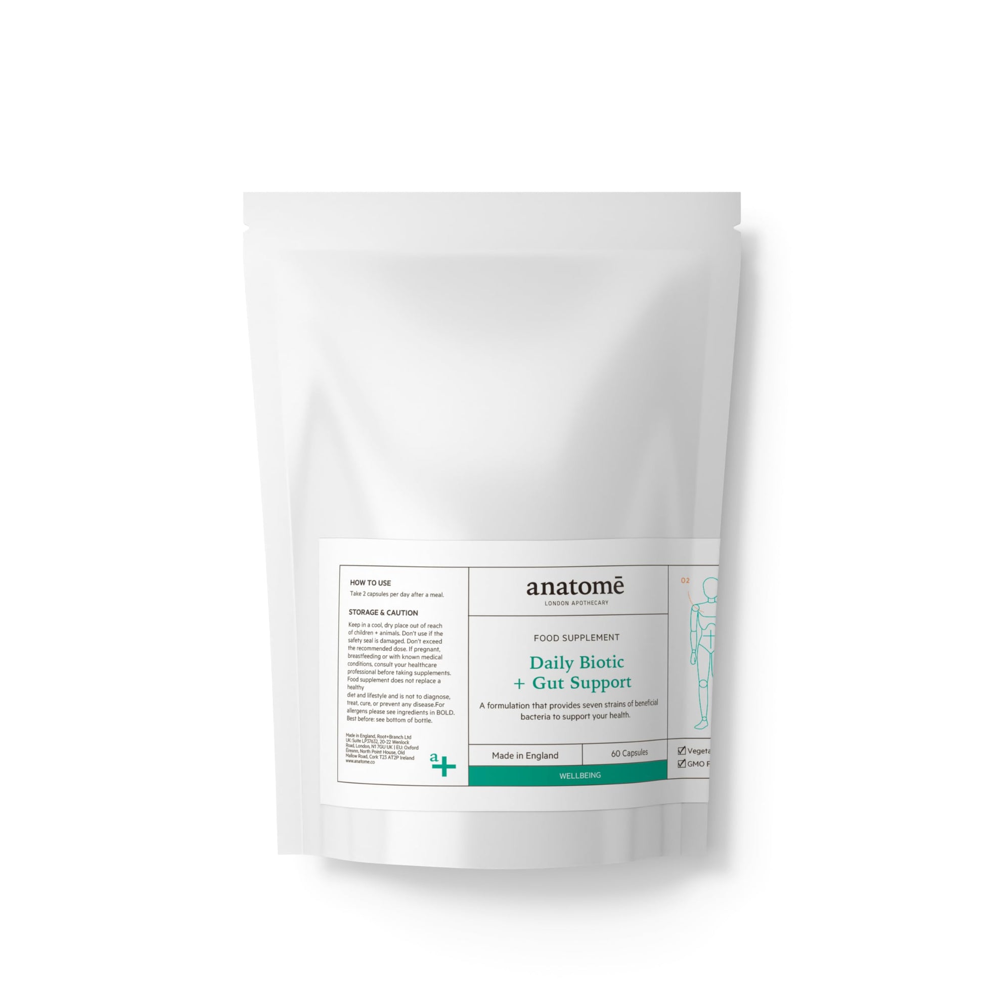 Anatome Daily Biotic + Gut Support Refill Pouch - New Formula Nutritional Supplement - Probiotic with 20 Billion Good Gut Bacteria - 60 Capsules