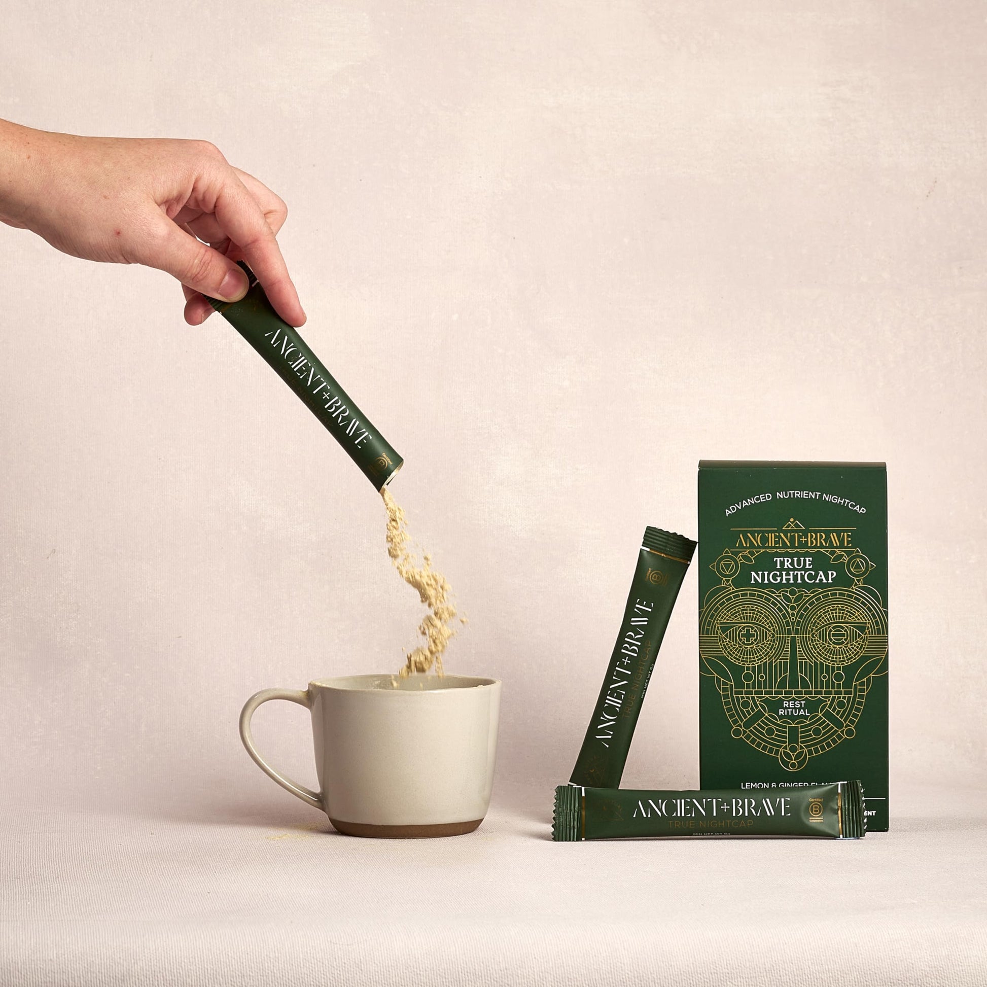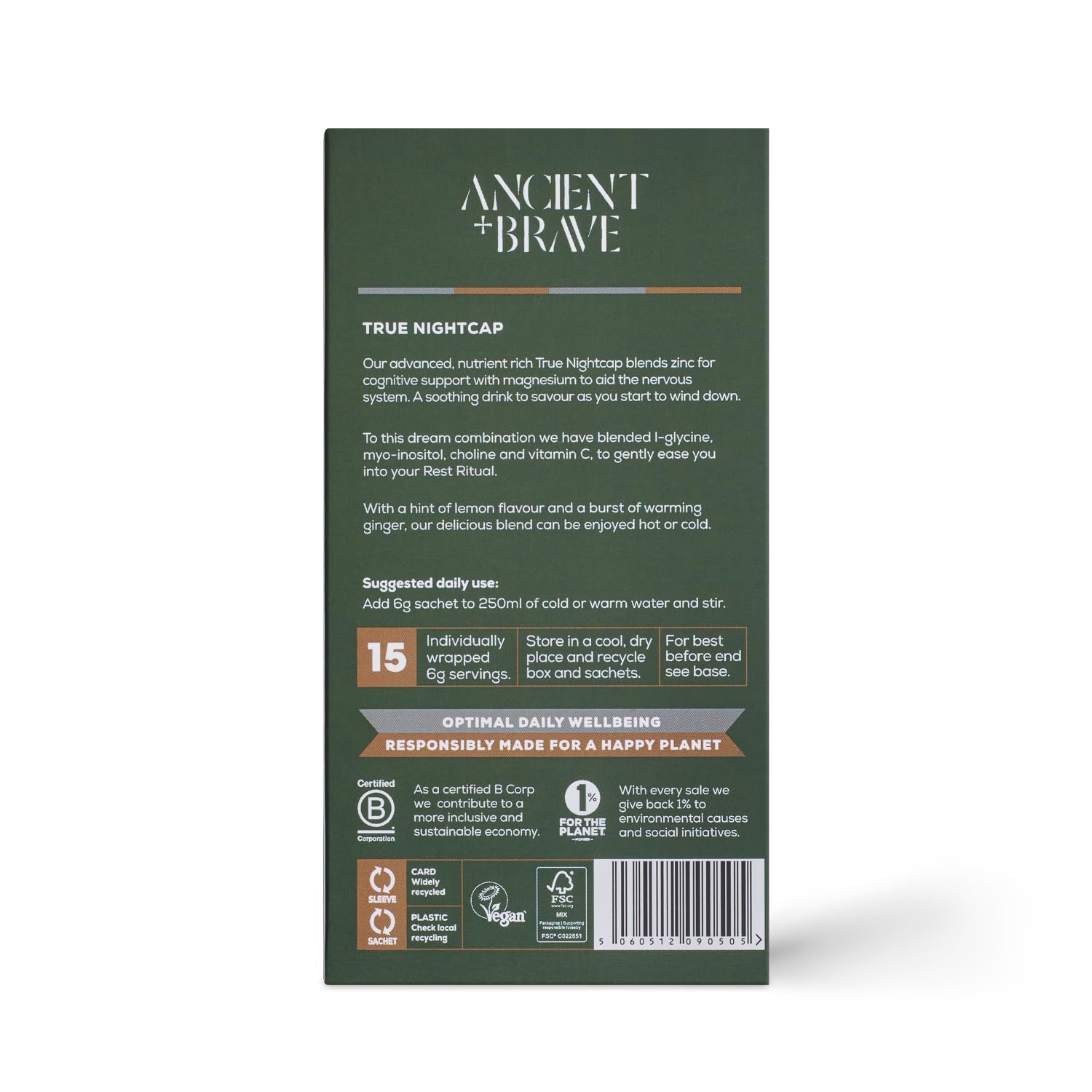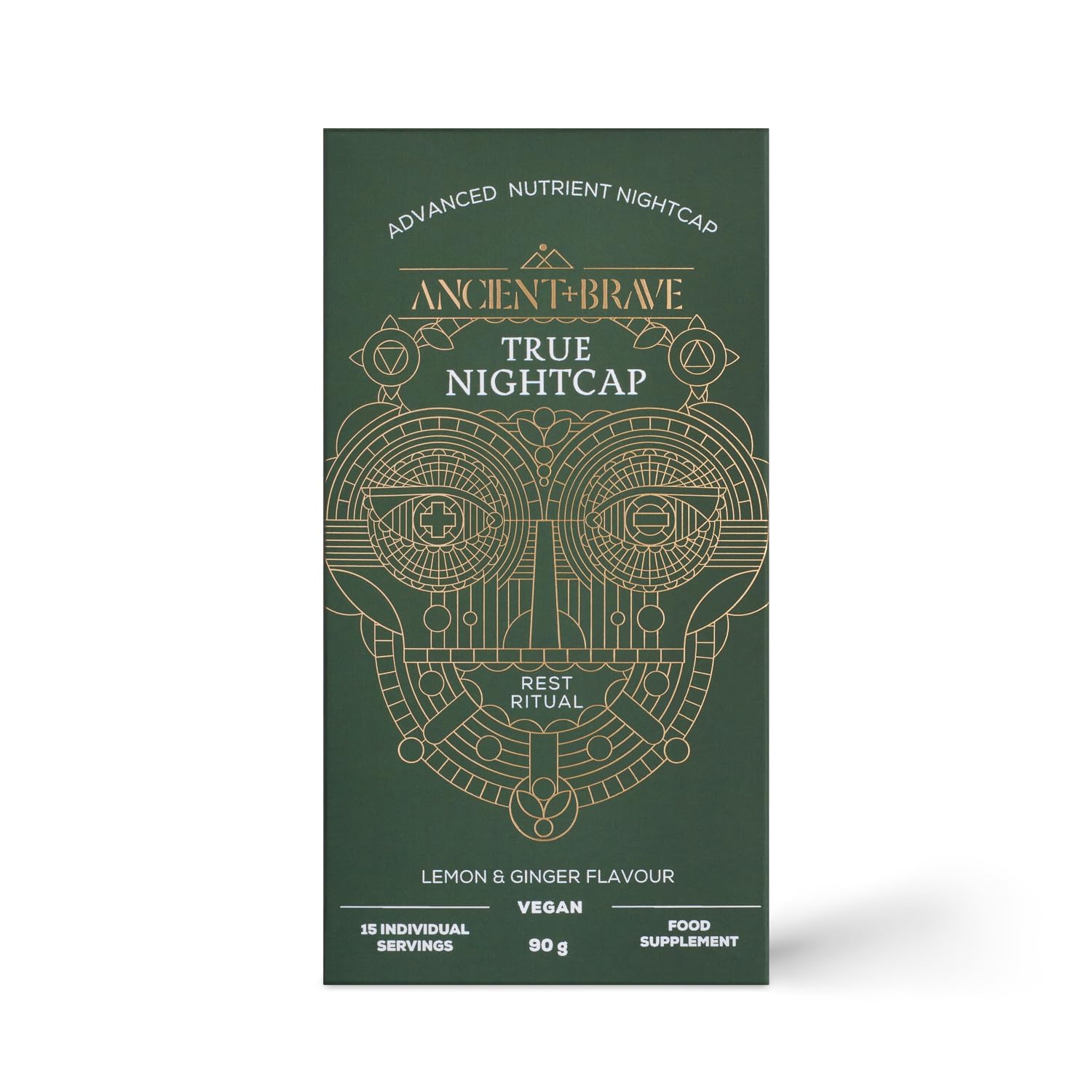 Ancient + Brave True Nightcap 15 x 6g Sachets - Zinc, Magnesium, Vitamin C, Amino Acid Rich - Aids Digestion, Restores and Rejuvenates Sleep - Hint of Lemon and Warming Ginger